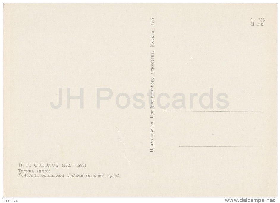 painting by P. Sokolov - Troika in the Winter - horse sledge - Russian art - 1969 - Russia USSR - unused