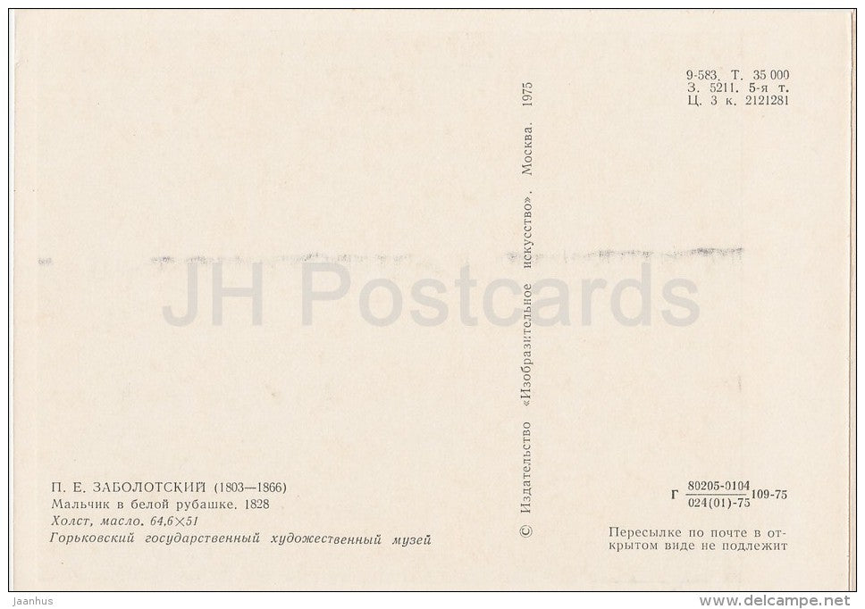 painting by P. Zablotsky - Boy in a White Shirt , 1828 - Russian art - 1975 - Russia USSR - unused