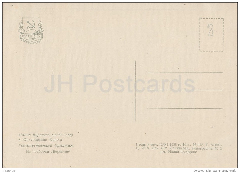 painting by Paolo Veronese - Mourning of Christ - Italian art - Russia USSR - 1958 - unused