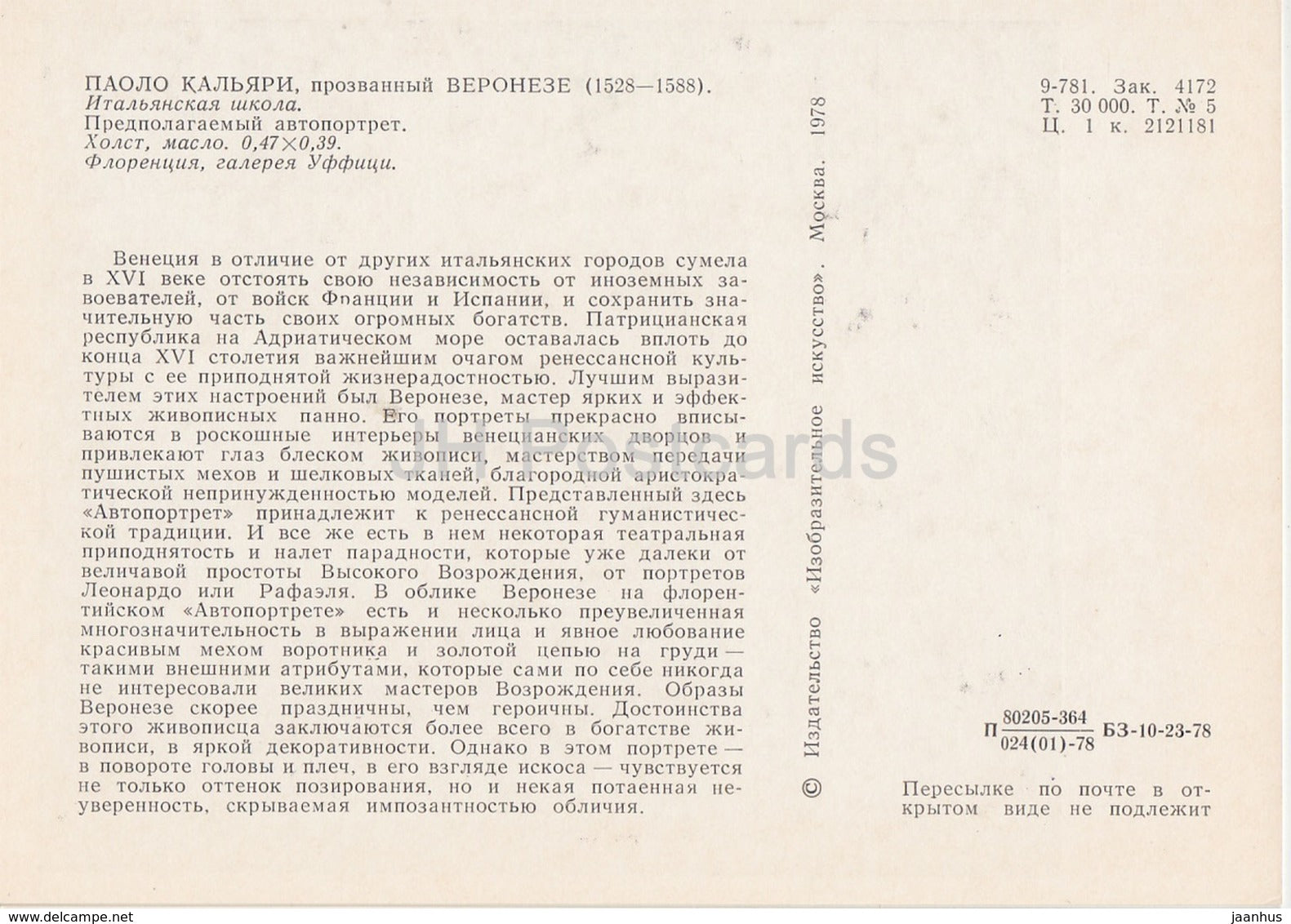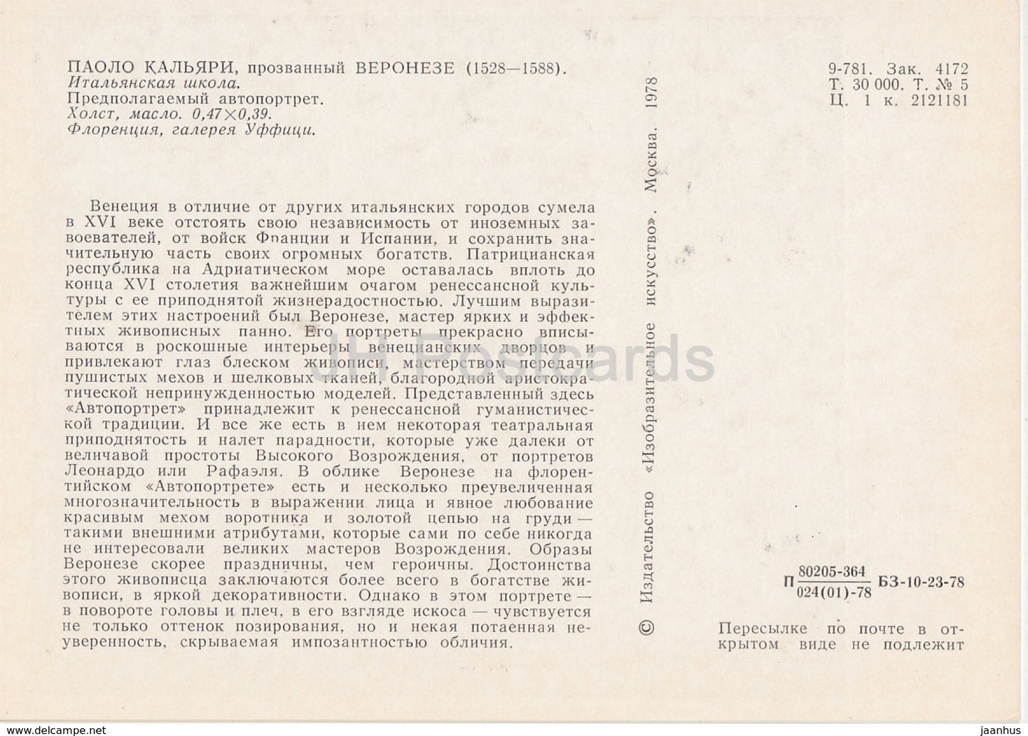 Painting by Paolo Veronese - Self Portrait supposedly - Italian art - 1978 - Russia USSR - unused