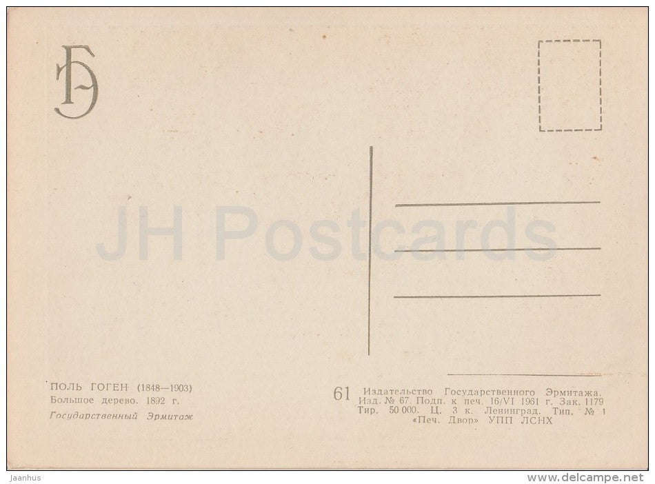 painting by Paul Gauguin - Big Tree , 1892 - French art - 1961 - Russia USSR - unused