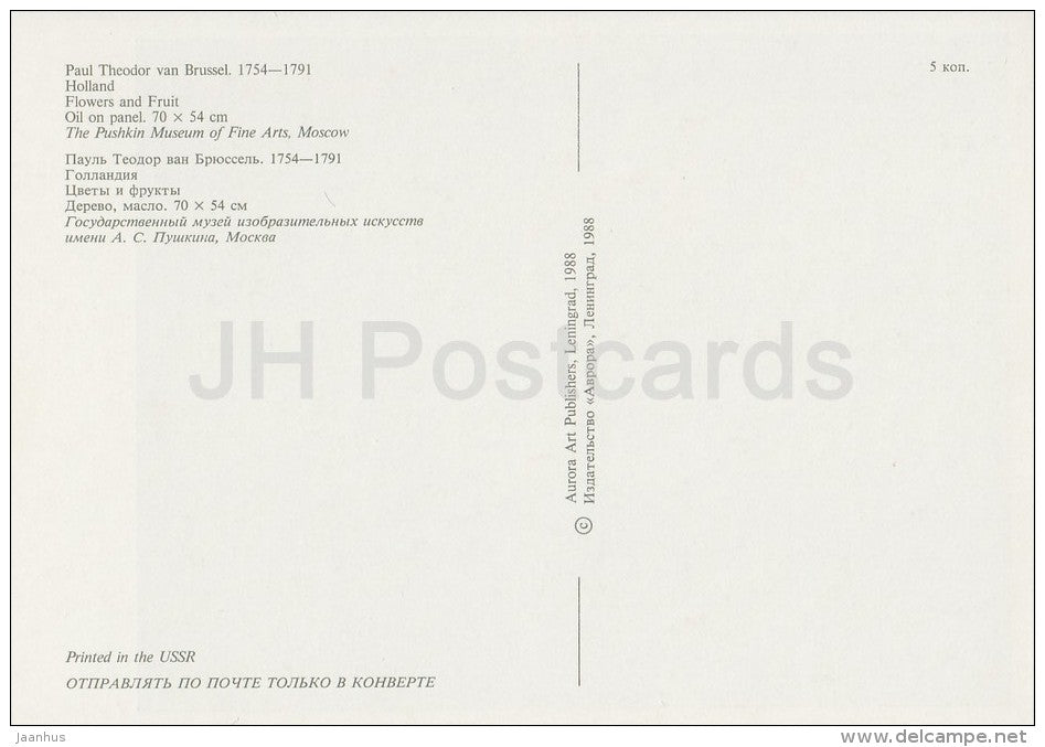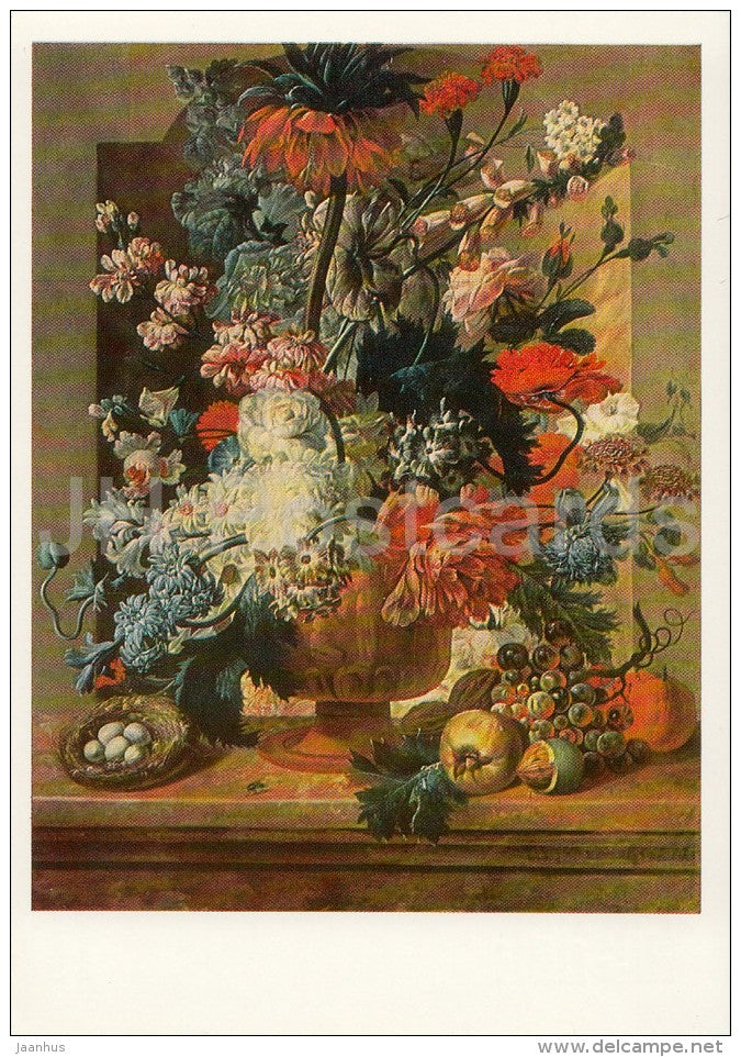painting by Paul Theodor van Brussel - Flowers and Fruit - Dutch art - Russia USSR - 1988 - unused