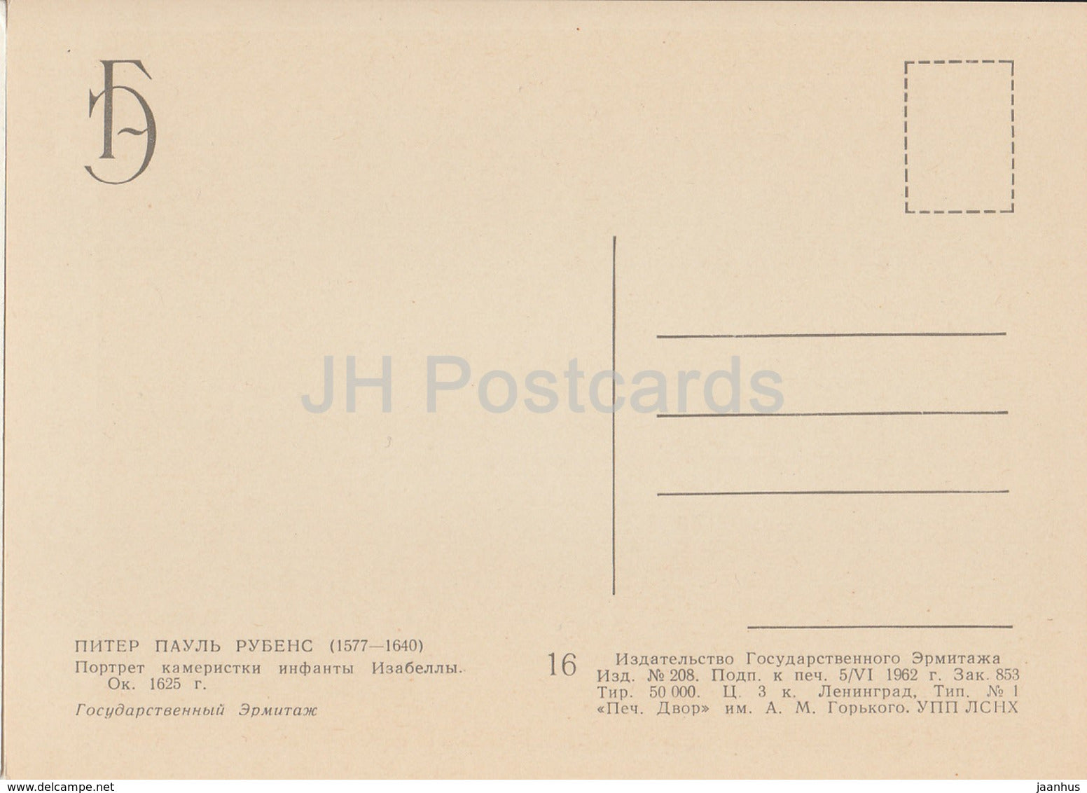 painting by Peter Paul Rubens - Portrait of the Maid of the Infanta Isabella - Flemish art - 1962 - Russia USSR - unused