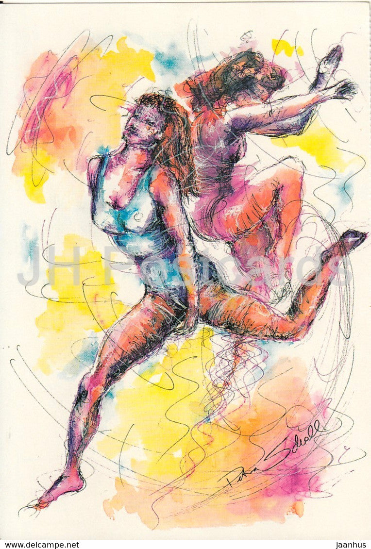 painting by Petra Scholl - Gymnastik - gymnastics - sport - Austrian art - Germany - unused