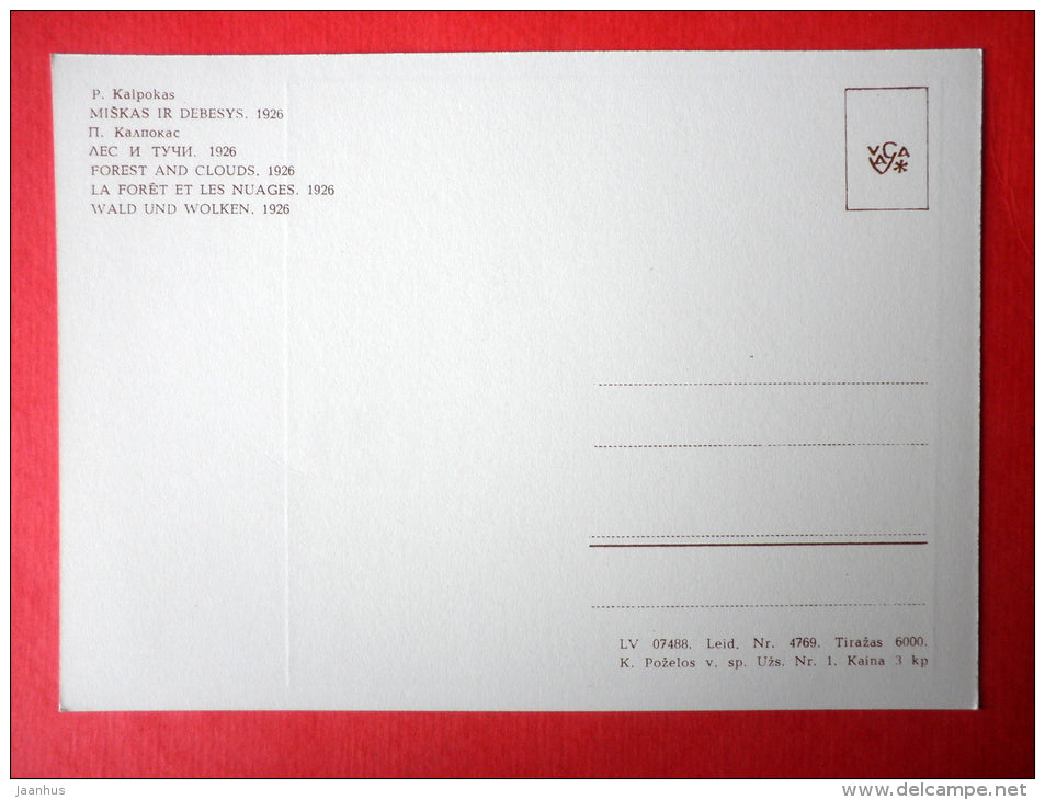 painting by Petras Kalpokas - Forest and Clouds . 1926 - sailing boat - lithuanian art - unused