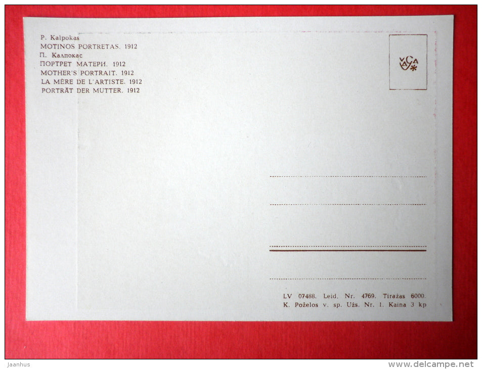 painting by Petras Kalpokas - Mother`s Portrait . 1912 - lithuanian art - unused