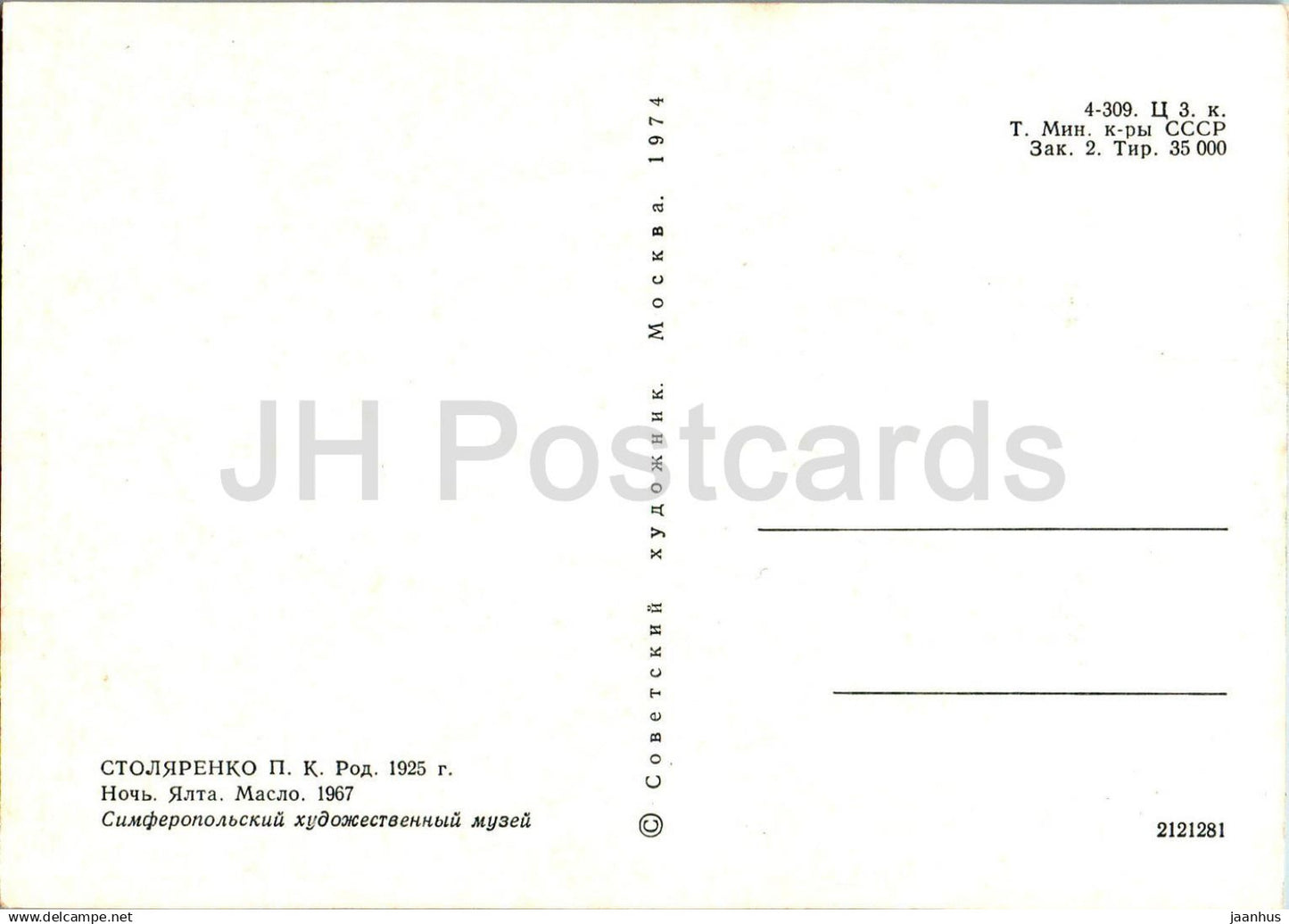painting by Petro Stoliarenko - Stolyarenko - Night . Yalta - Ukrainian art - 1974 - Russia USSR - unused