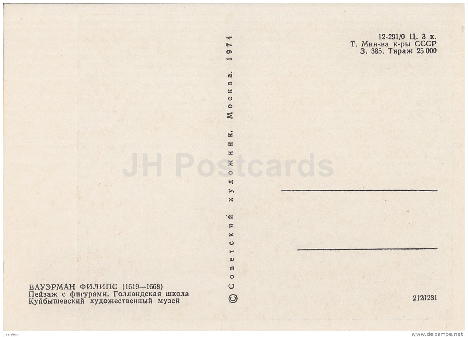 painting by Philips Wouwerman - Landscape with Characters , 1435 - Dutch art - 1974 - Russia USSR - unused