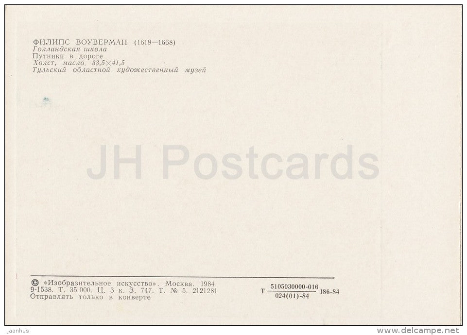 painting by Philips Wouwerman - Travelers on the road - horse - Dutch art - Russia USSR - 1984 - unused