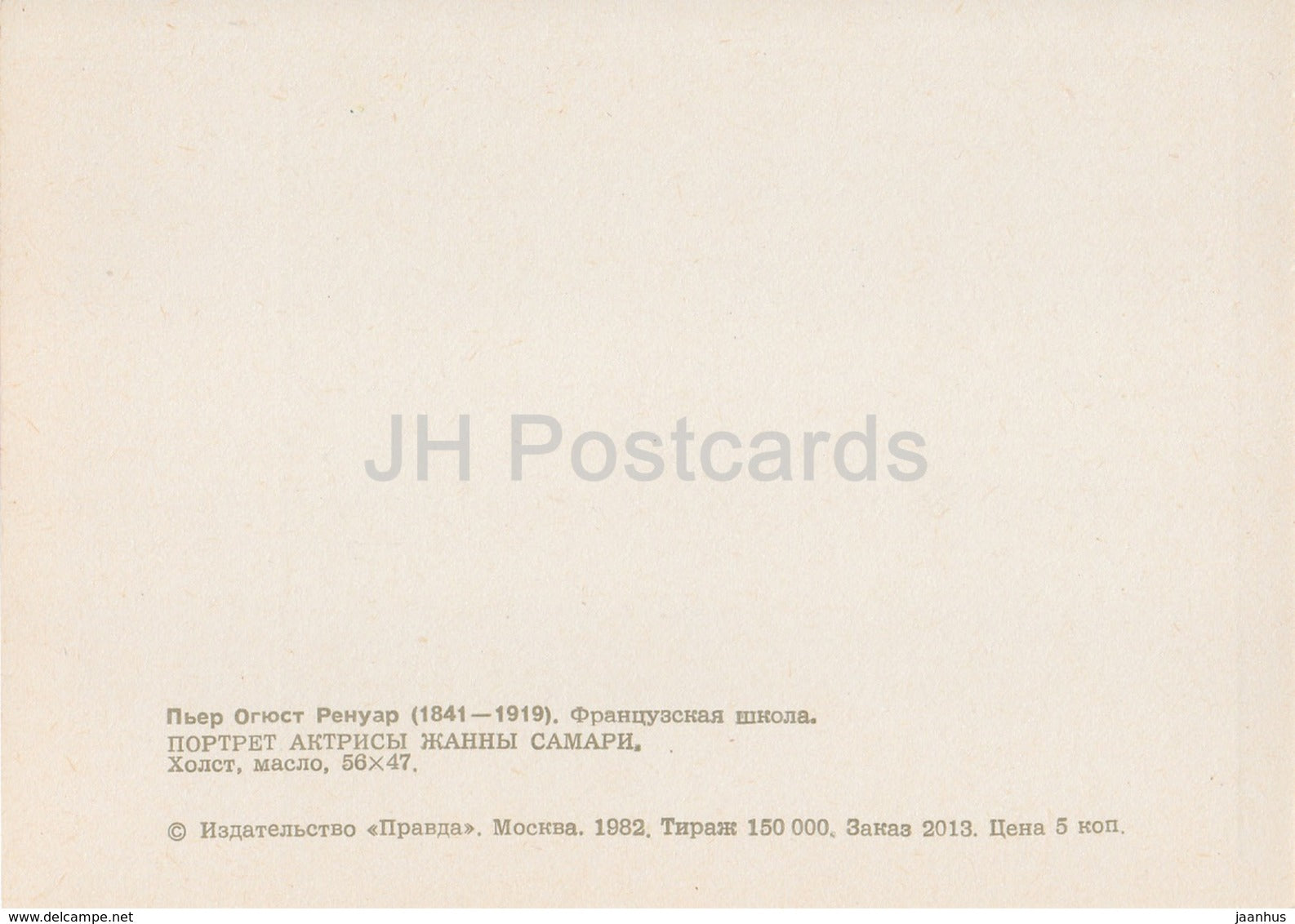painting by Pierre-Auguste Renoir - Jeanne Samary in a Low Necked Dress - French art - 1982 - Russia USSR - unused