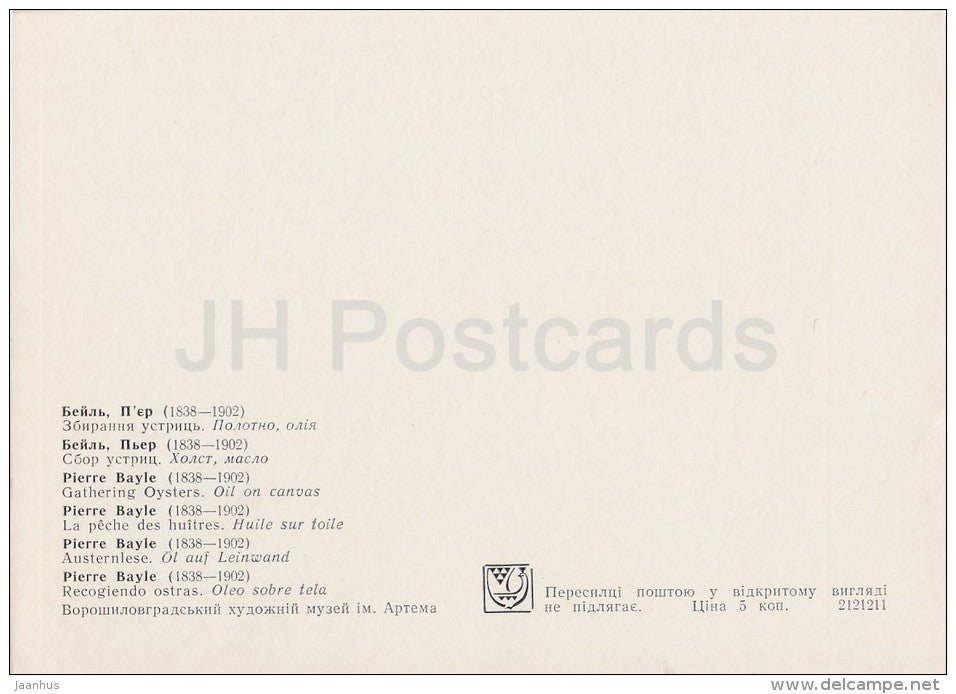 painting by Pierre Bayle - Gathering Oysters - French art - 1977 - Russia USSR - unused
