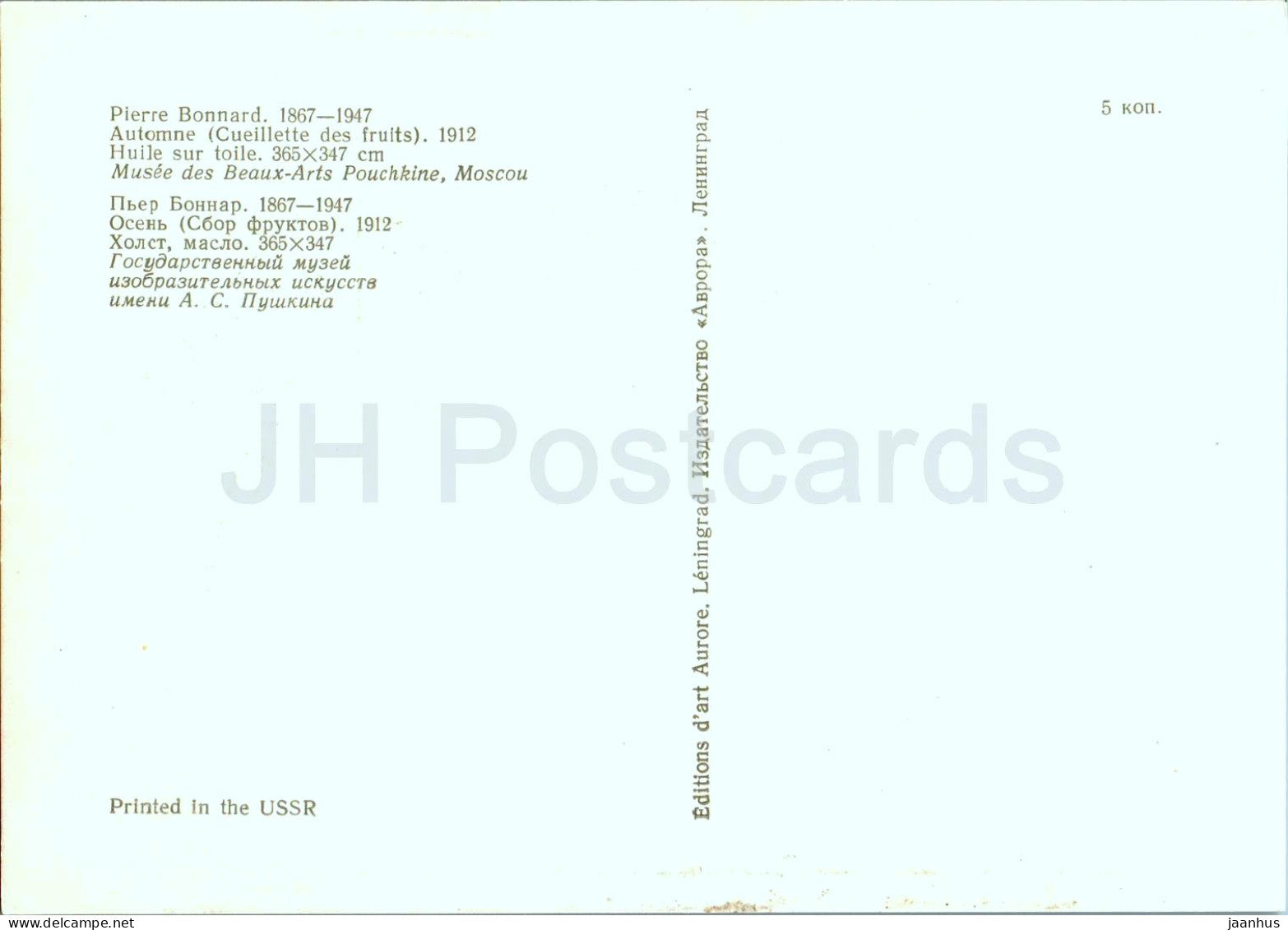 painting by Pierre Bonnard - Autumn - Fruit picking - French art - 1977 - Russia USSR - unused