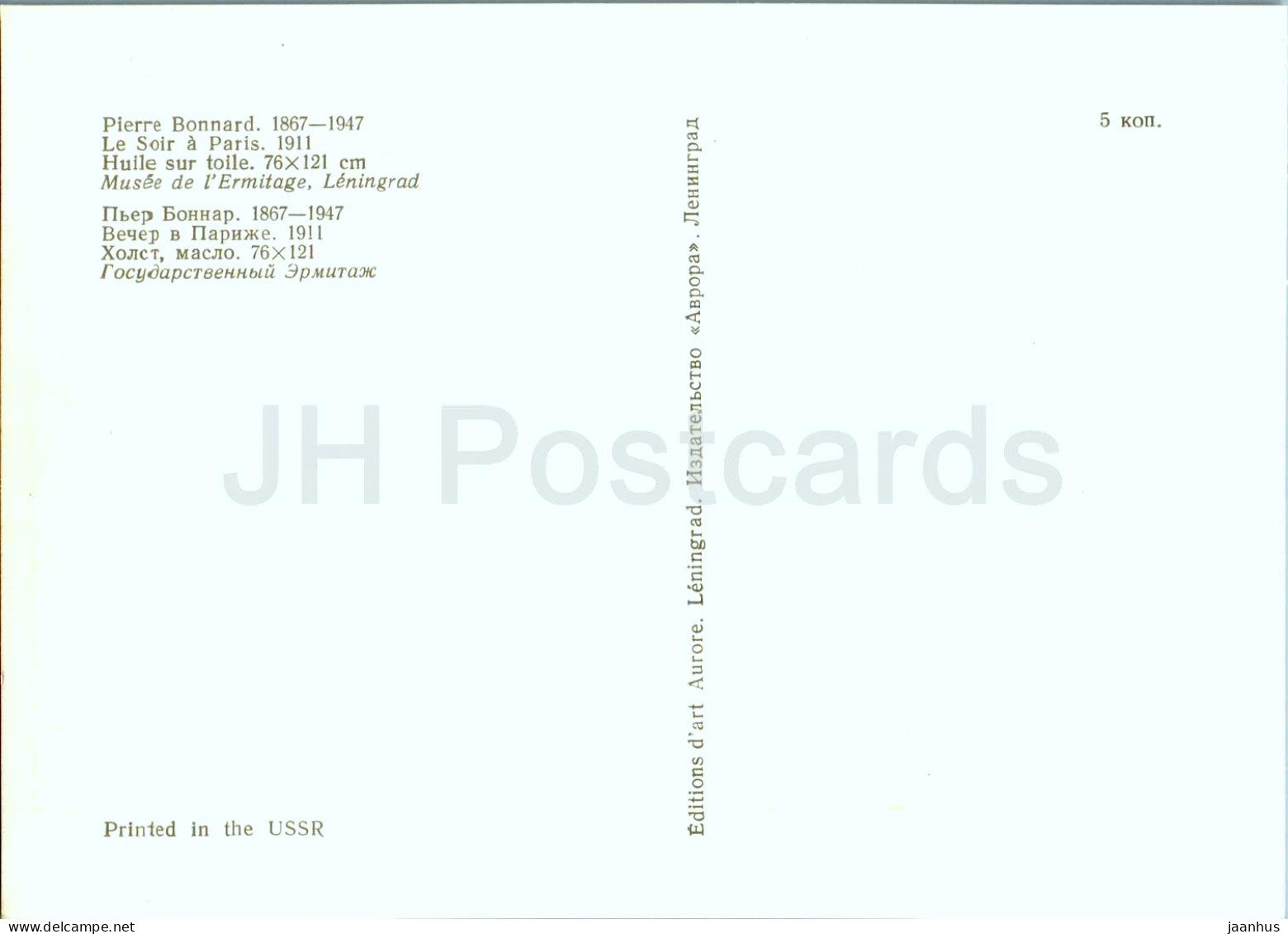painting by Pierre Bonnard - Evening in Paris - French art - 1977 - Russia USSR - unused