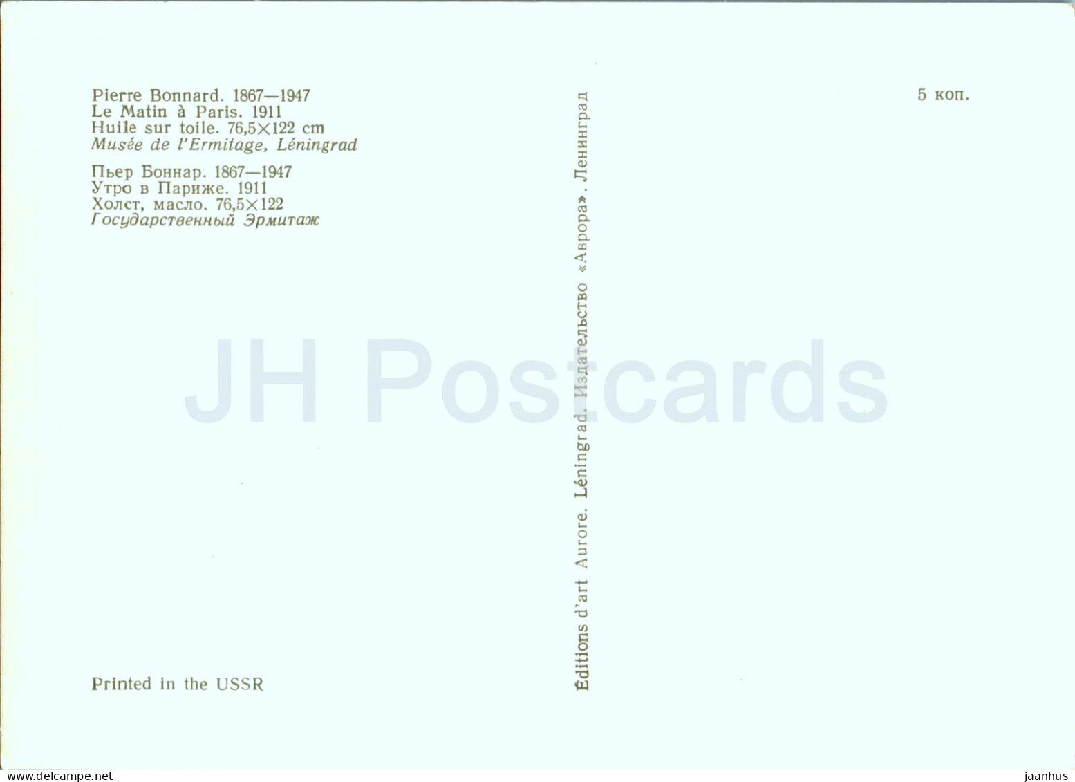 painting by Pierre Bonnard - Morning in Paris - French art - 1977 - Russia USSR - unused