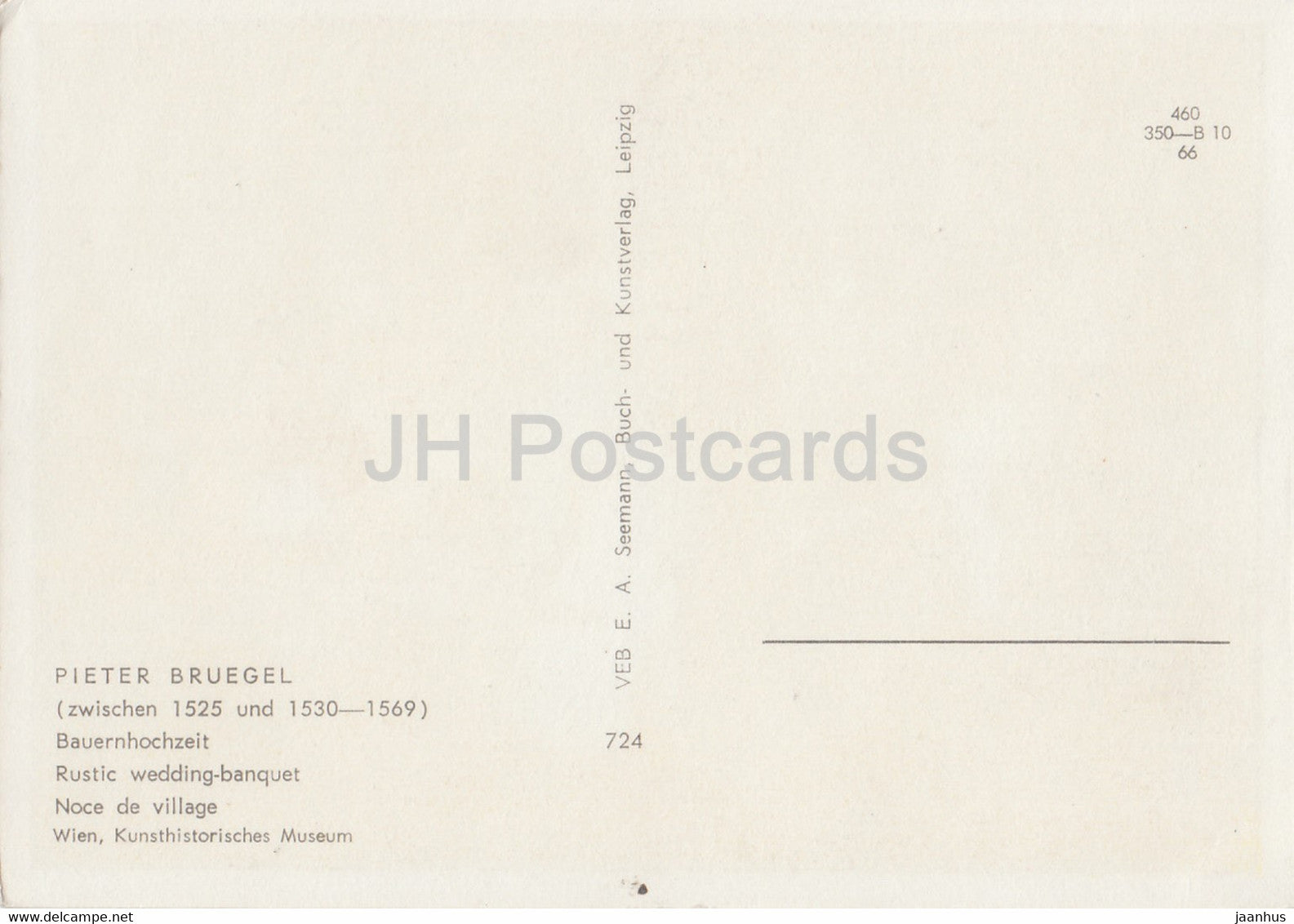 painting by Pieter Bruegel the Elder - Bauernhochzeit - Country wedding - Dutch art - Germany DDR - unused