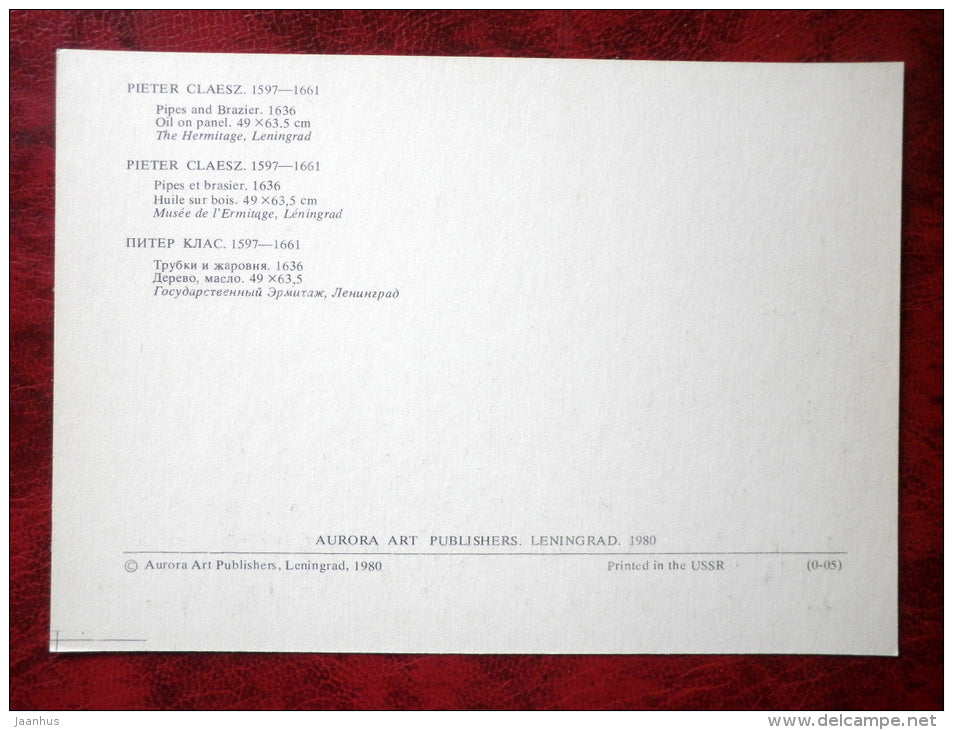 Painting by Pieter Claesz - Still Life - Pipes and Brazier . 1636 - dutch art - unused