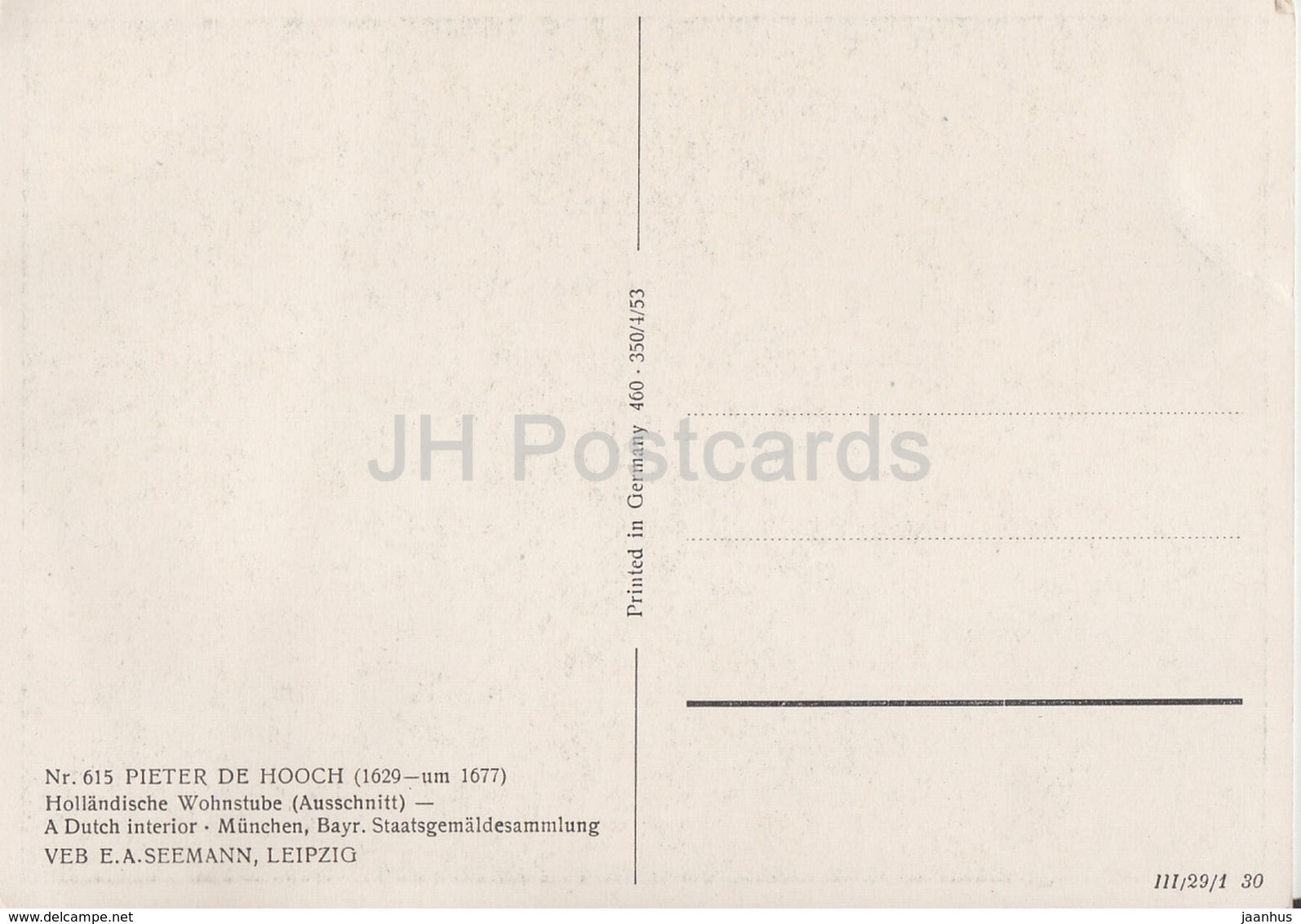 painting by Pieter de Hooch - Hollandische Wohnstube - A Dutch Interior - Dutch art - Germany DDR - unused