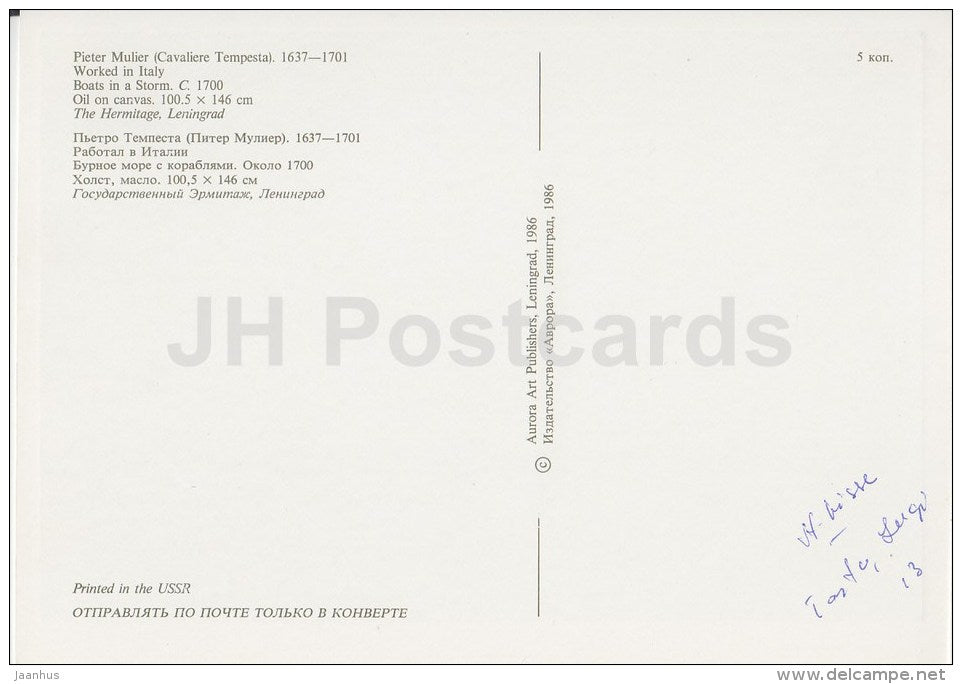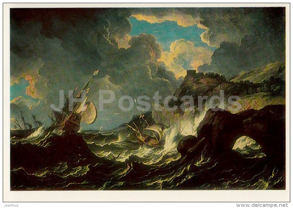 painting by Pieter Mulier - Boats in a Storm , 1700 - Dutch art - 1986 - Russia USSR - unused