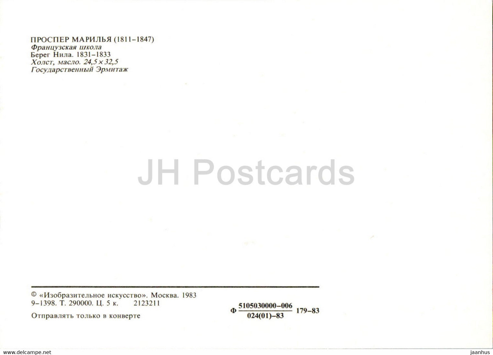 painting by Prosper Marilhat - Bank of the Nile - camel - animals - boat - French art - 1983 - Russia USSR - unused