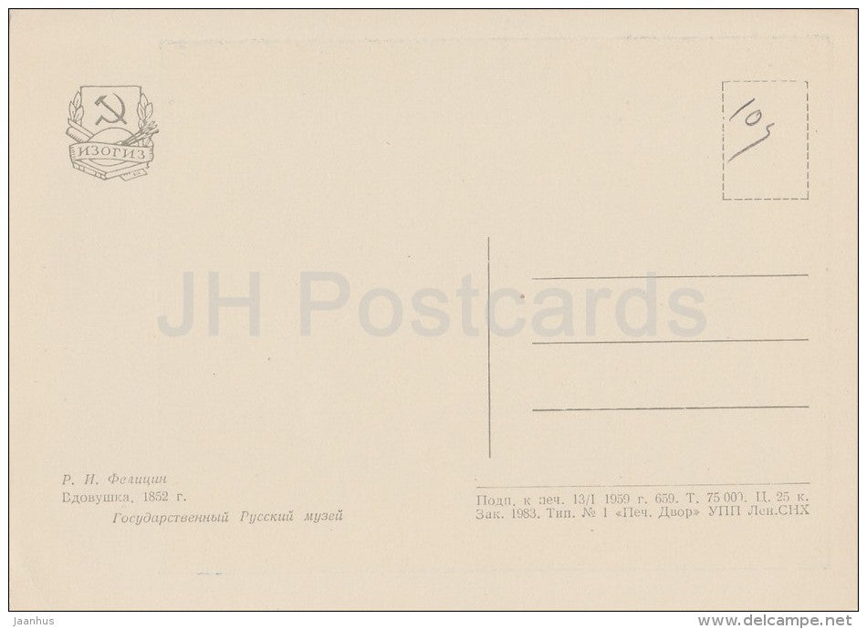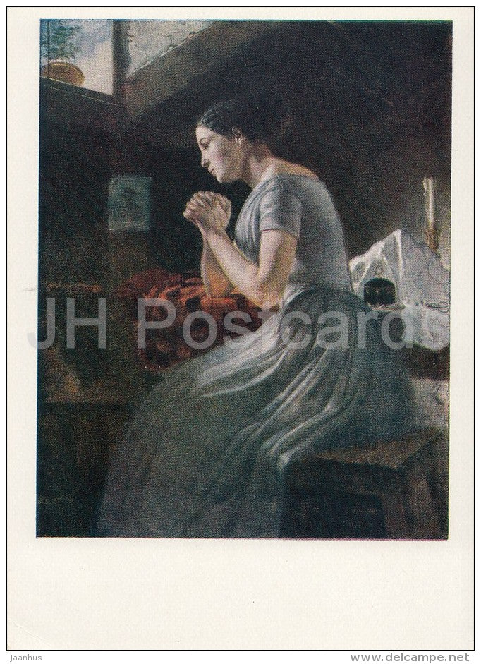painting by R. Felitsin - Widow , 1852 - praying woman - Russian art - 1959 - Russia USSR - unused