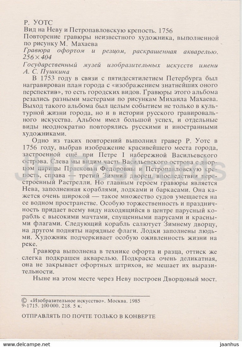 painting by R. Watts - View of the Neva and the Peter and Paul Fortress - art - 1985 - Russia USSR - unused