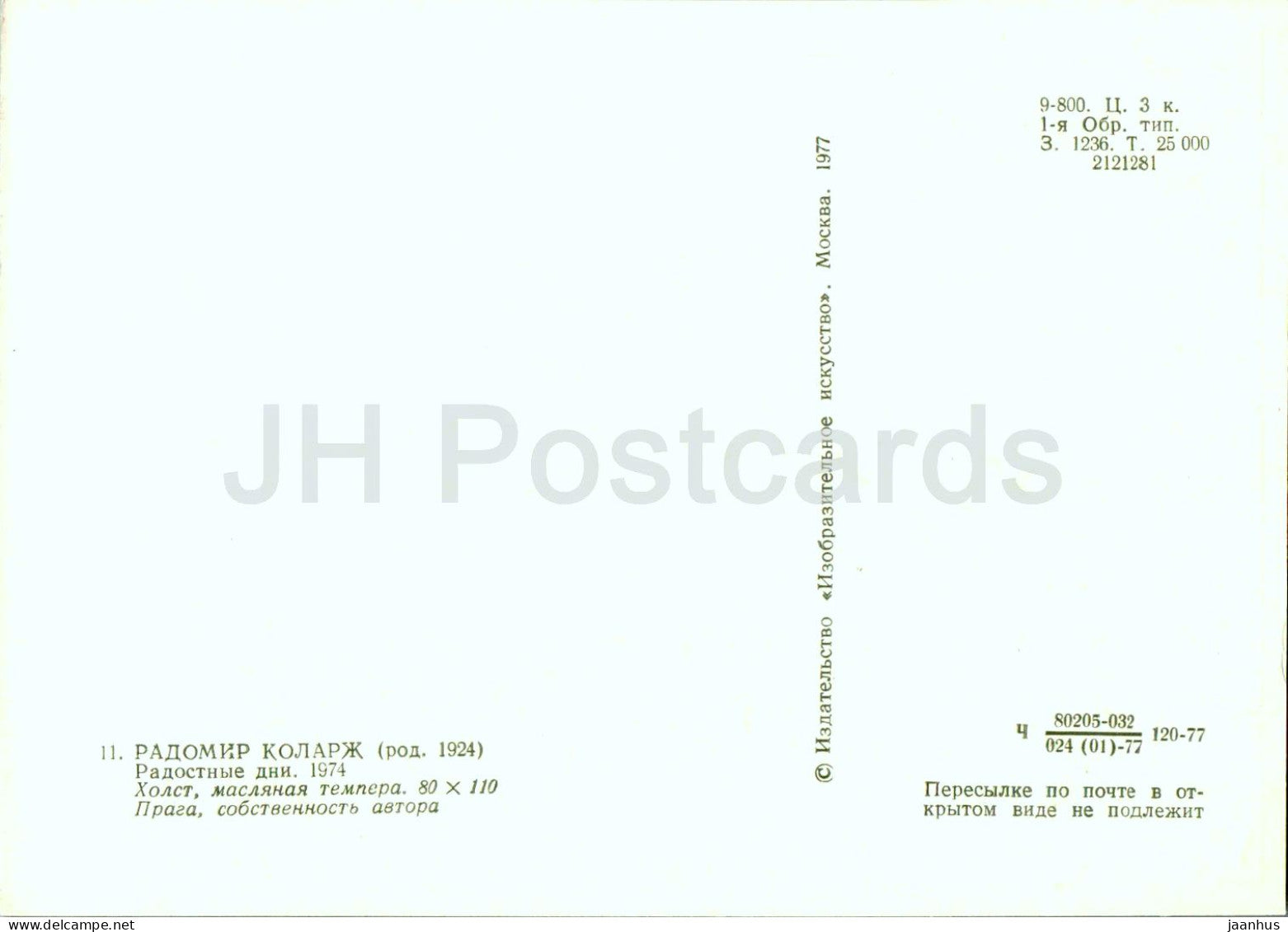 painting by Radomir Kolar - Joyful Days - Czech art - 1977 - Russia USSR - unused