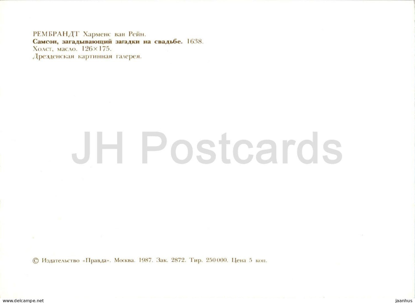 painting by Rembrandt - Samson telling riddles at a wedding - Dutch art - 1987 - Russia USSR - unused