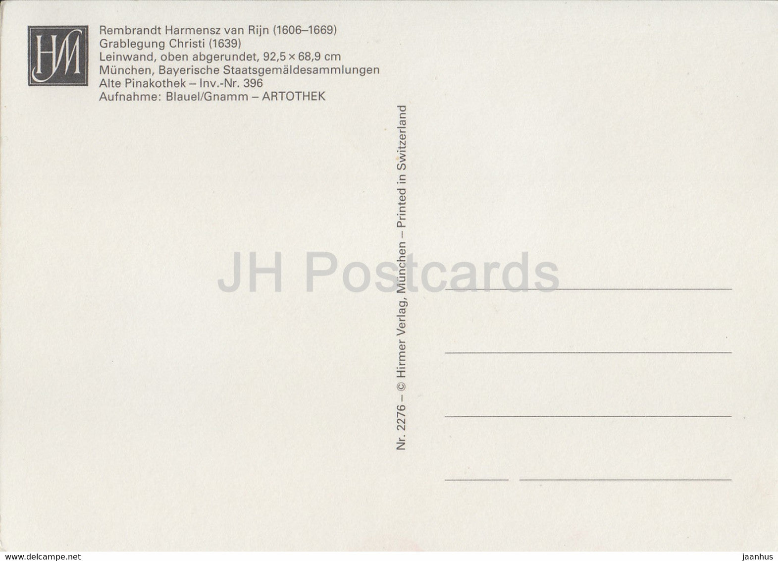 painting by Rembrandt van Rijn - Grablegung Christi - Dutch art - Germany - unused