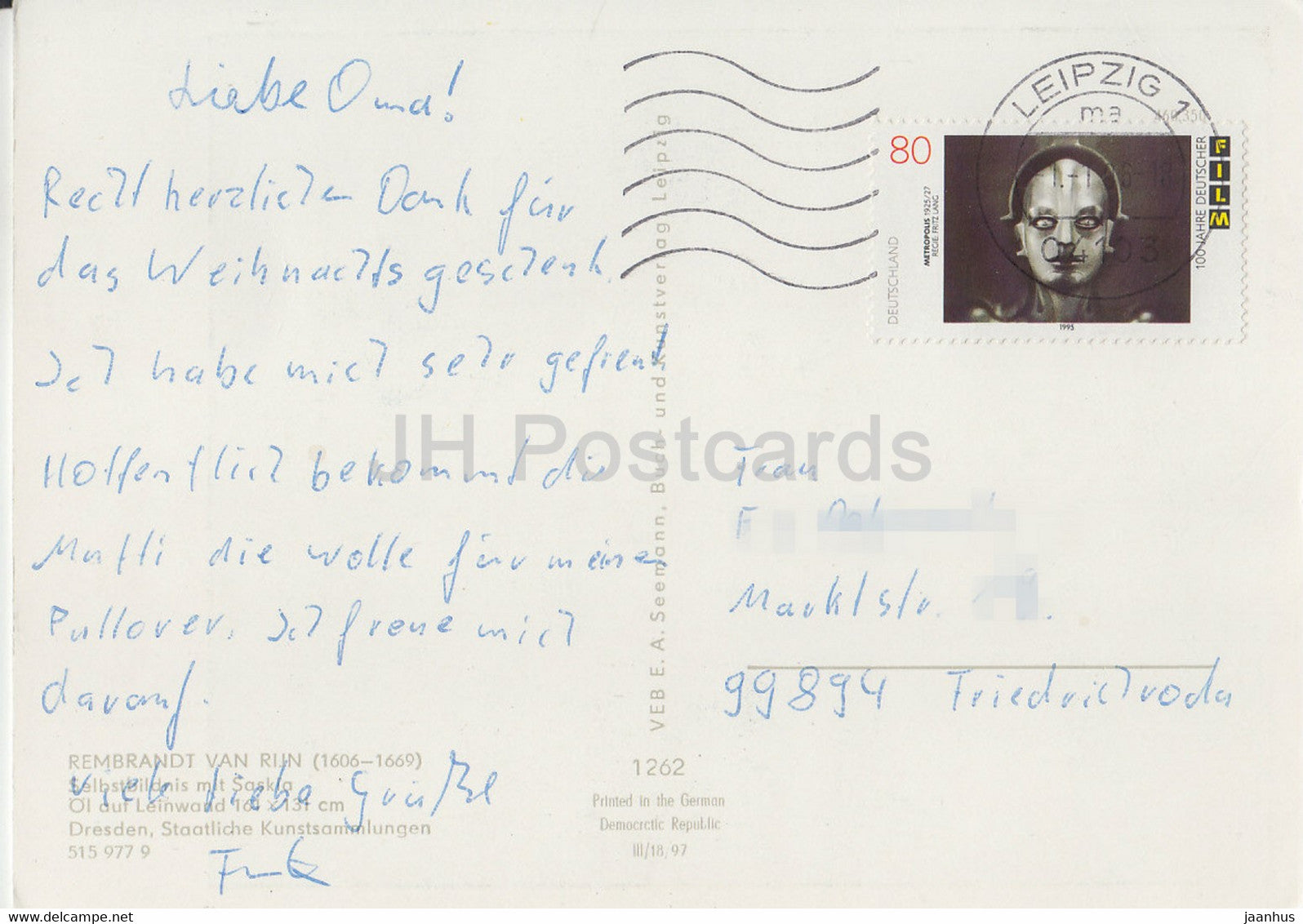 painting by Rembrandt van Rijn - Selbstbildnis mit Saskia - Dutch art - Germany DDR - used