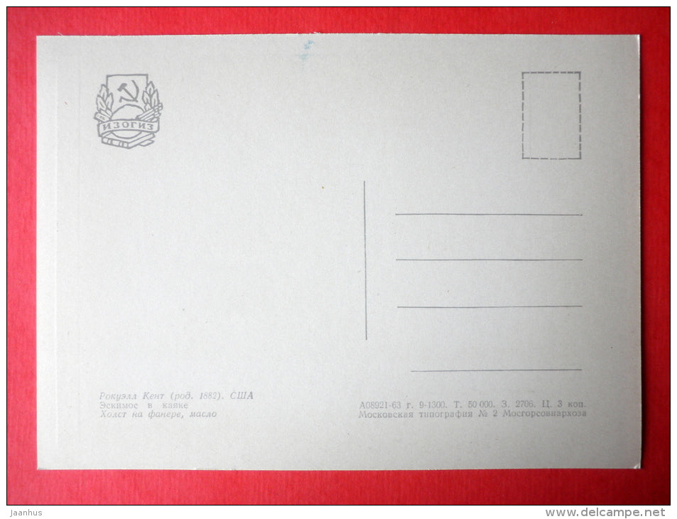 painting by Rockwell Kent - Eskimo in the Kayak . Northern Greenland - art of USA - unused
