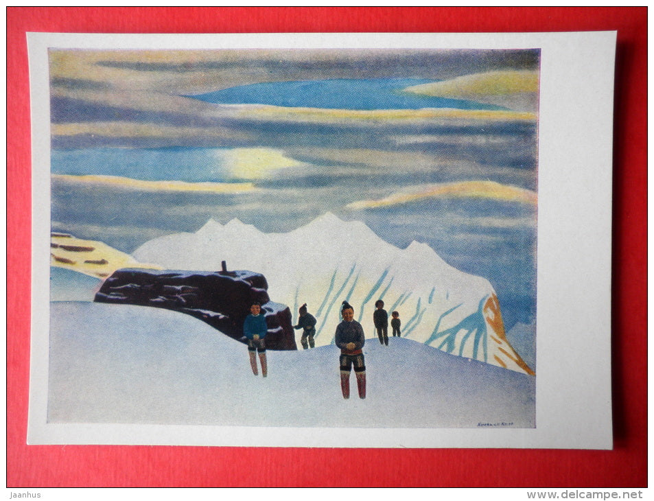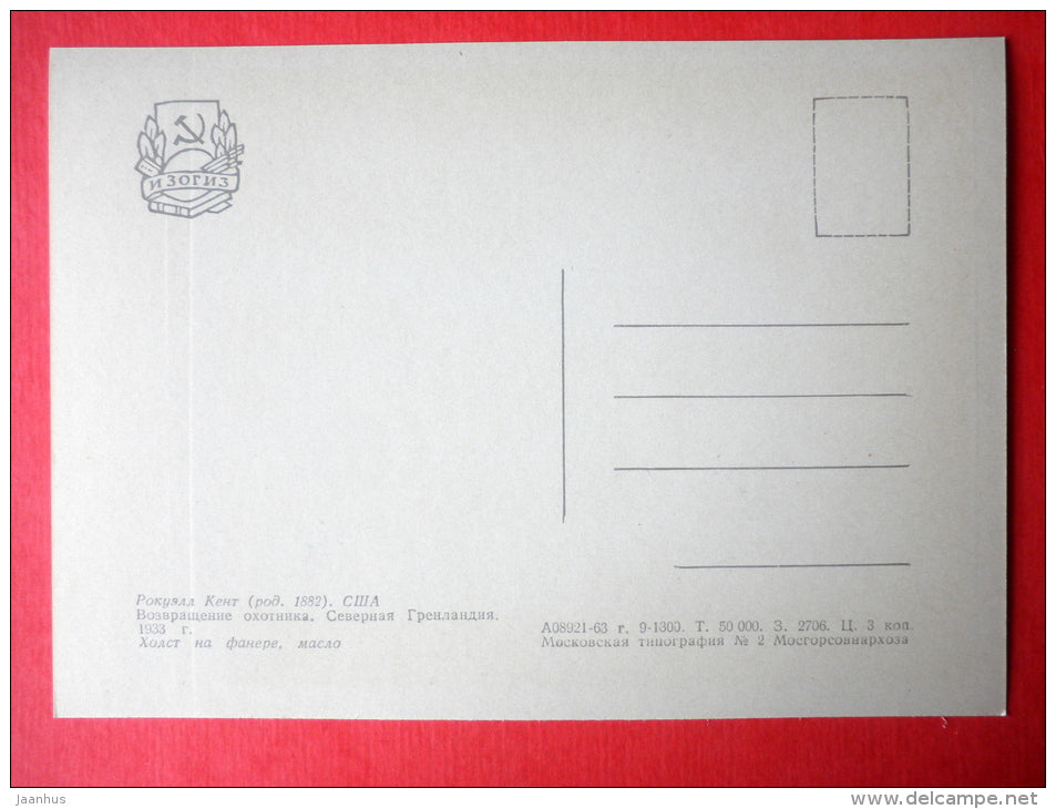 painting by Rockwell Kent - Hunter's Return . Northern Greenland . 1933 - art of USA - unused