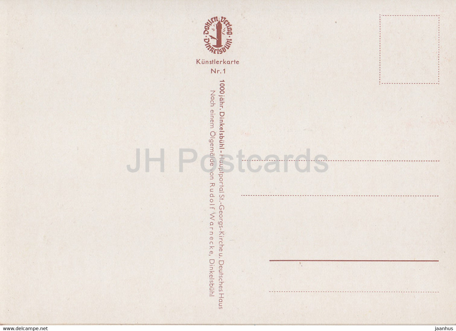 painting by Rudolf Warnecke - Dinkesbuhl - Hauptportal St Georgs Kirche - German art - Germany - unused