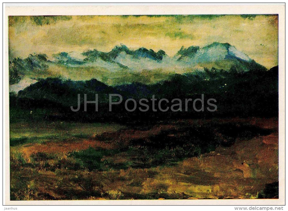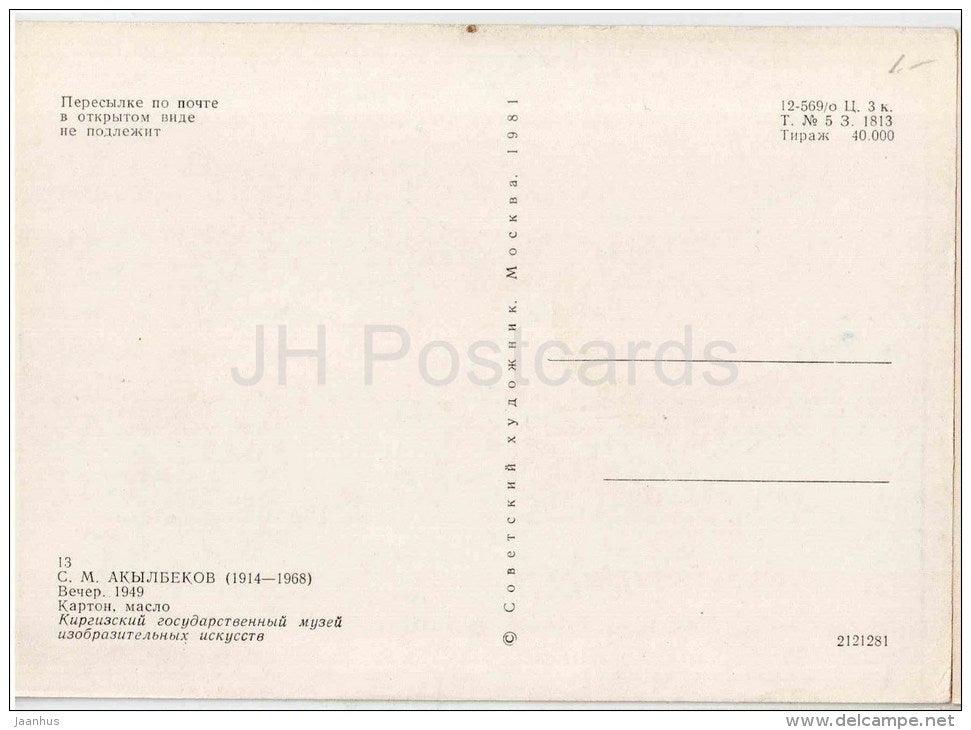 painting by S. Akylbekov - The Evening , 1949 - kyrgyz art - unused