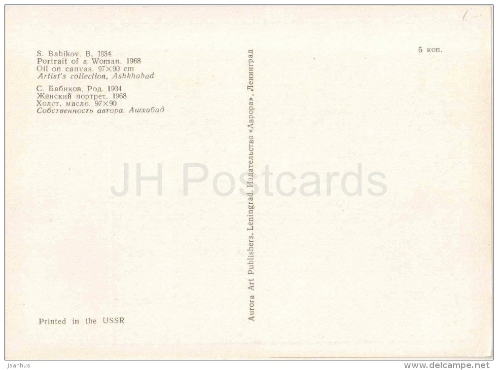 painting by S. Babikov - Portrait of a Woman , 1968 - turkmenian art - unused