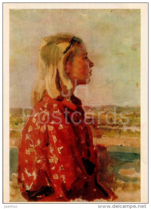 painting by S. Grigoryev - Ganya - girl - ukrainian art - unused