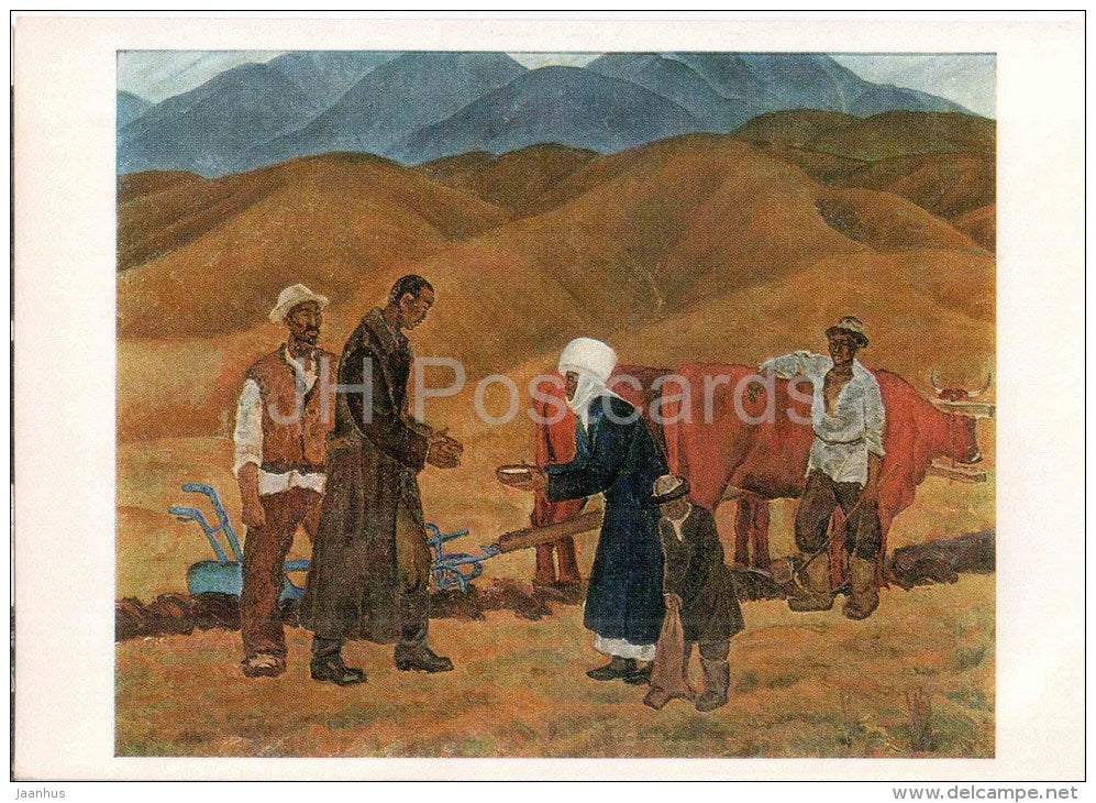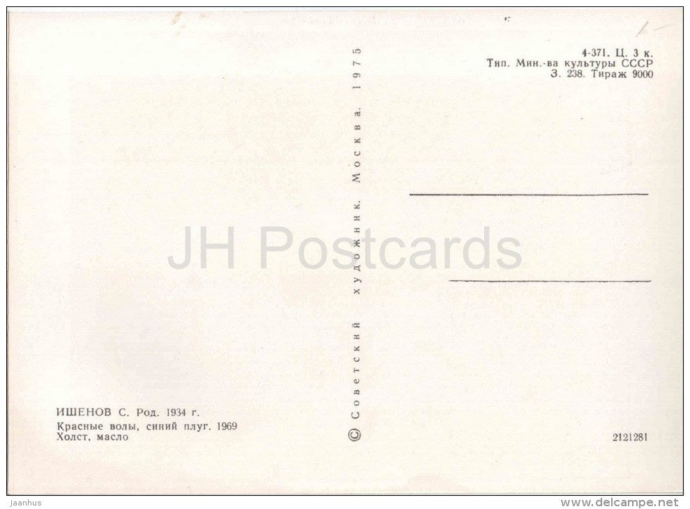 painting by S. Ishenov - Red Ox , Blue Meadow , 1969 - kyrgyz art - unused