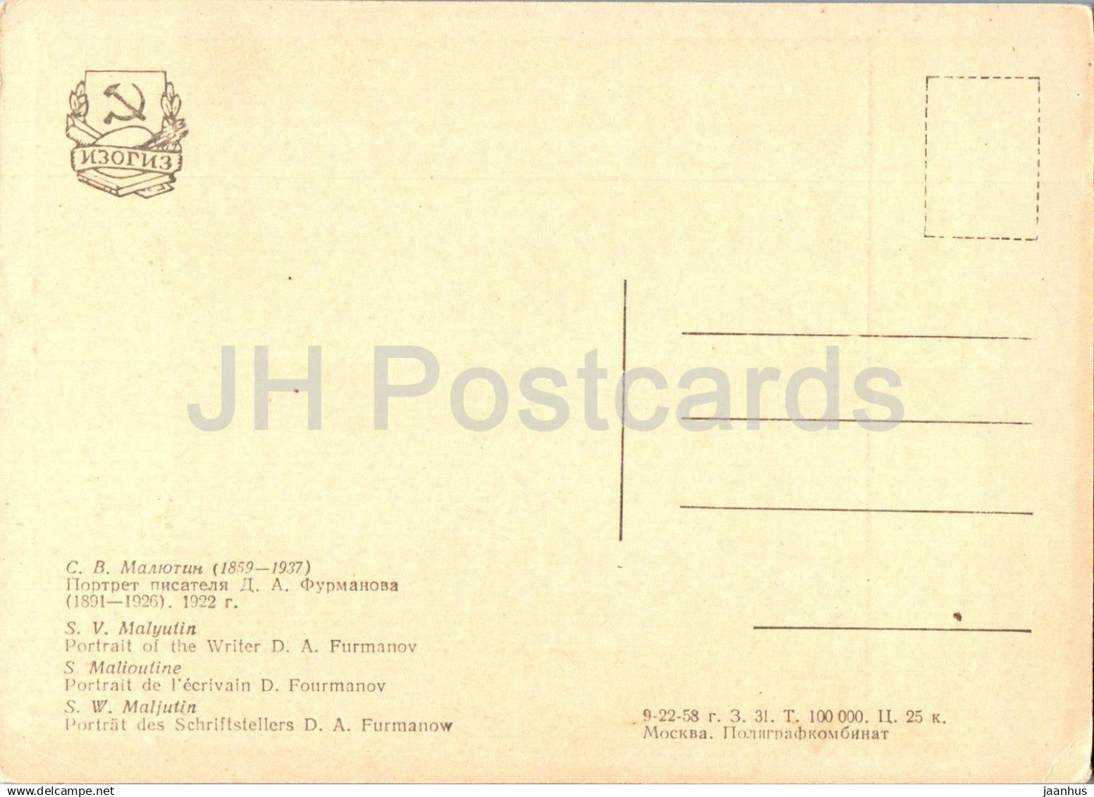 painting by S. Malyutin - Portrait of Russian writer D. Furmanov - man - Russian art - 1958 - Russia USSR - unused