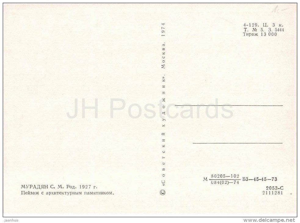 painting by S. Muradyan - Landscape with architectural monument - armenian art - unused