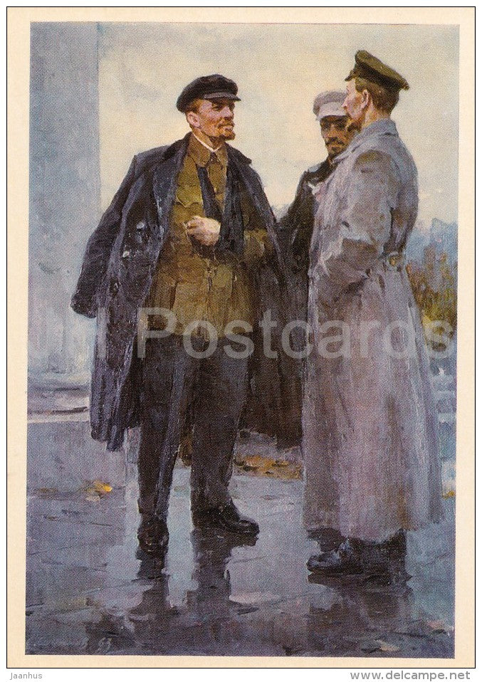 painting by S. Safonov - In Gorky , 1963 - Lenin - Dzherzinsky - Russian art - 1977 - Russia USSR - unused