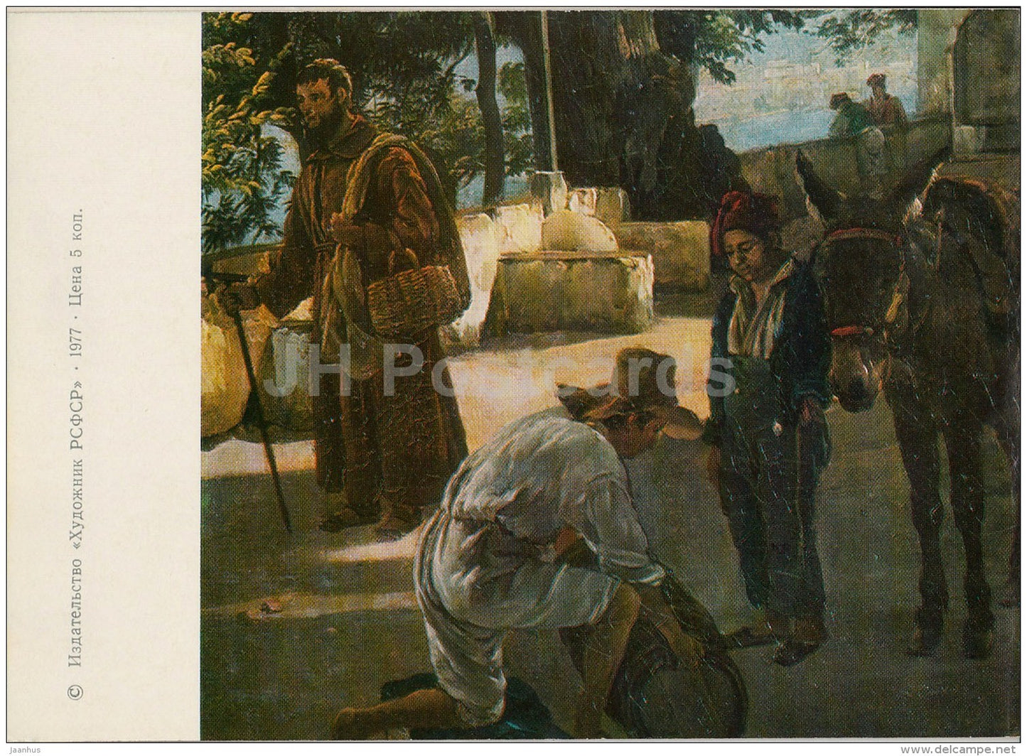 painting by S. Shchedrin - A Seashore Terrace . Capuchini near Sorrento - Russian art - 1977 - Russia USSR - unused