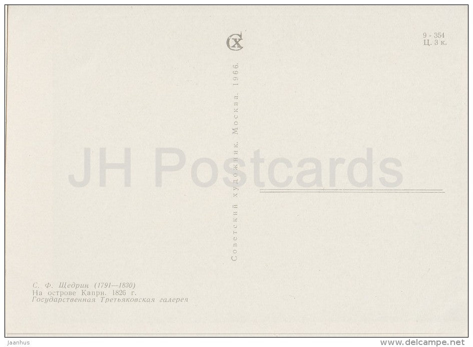 painting by S. Shchedrin - Capri Island , 1826 - boat - sea - Russian art - 1966 - Russia USSR - unused