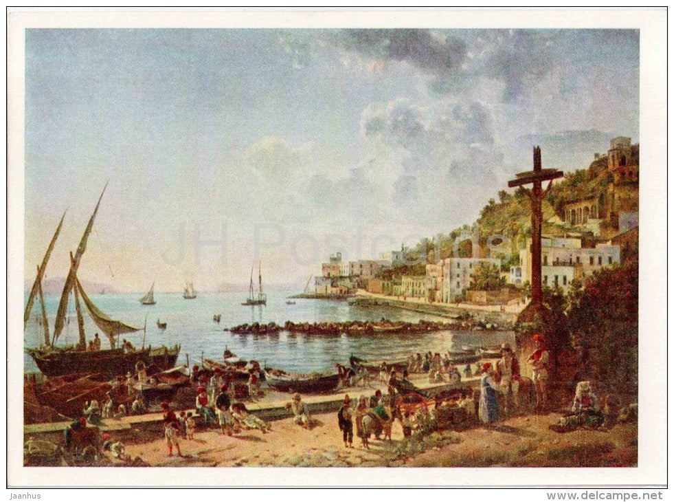 painting by S. Shchedrin - Harbor in Sorrento , 1827 - sailing boat - russian art - used