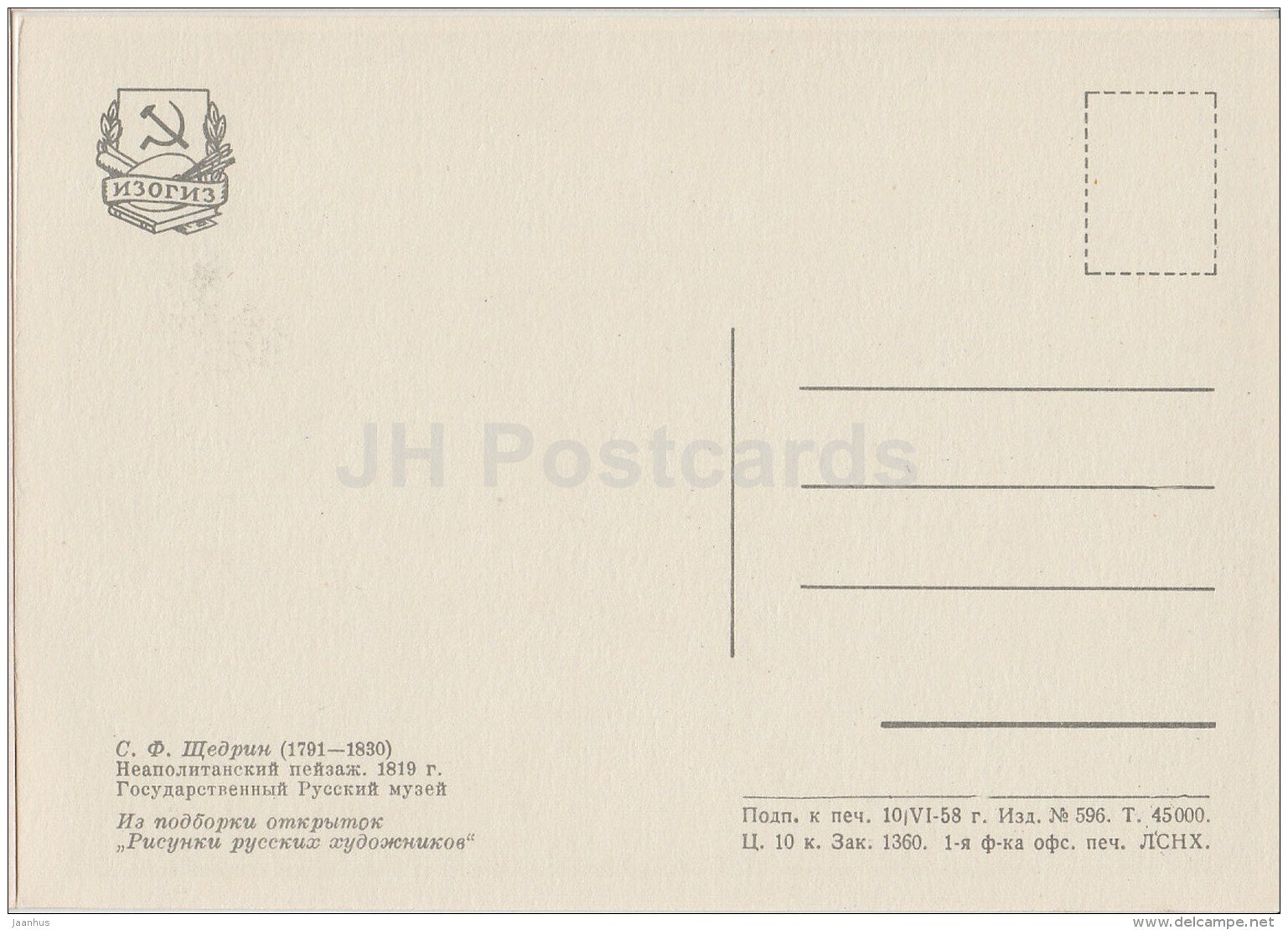 painting by S. Shchedrin - Naples Landscape , 1819 - Russian art - 1958 - Russia USSR - unused