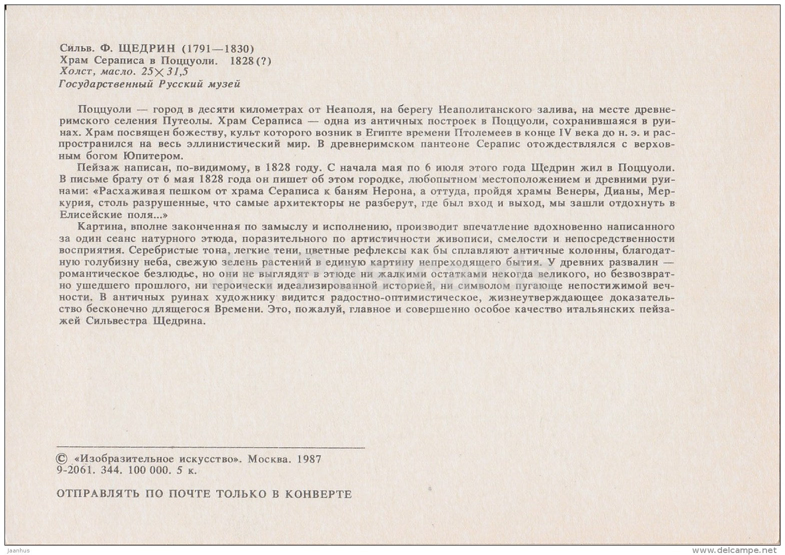 painting by S. Shchedrin - Temple of Serapis in Pozzuoli , 1828 - Russian art - 1987 - Russia USSR - unused