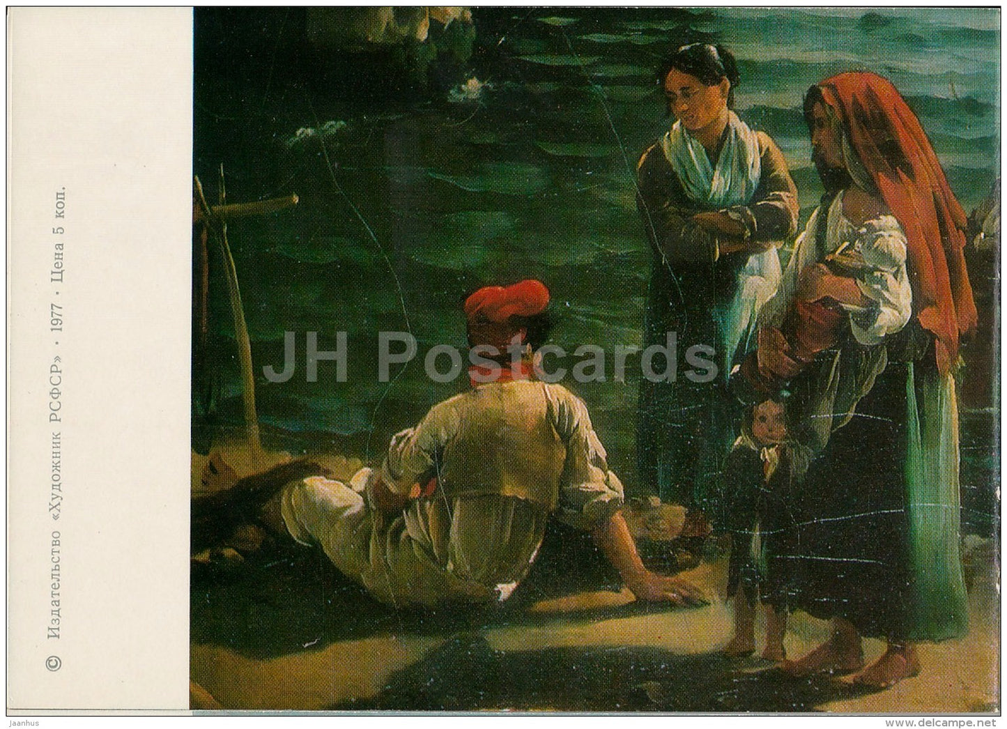 painting by S. Shchedrin - View of Naples , 1829 - ship - boat - Russian art - 1977 - Russia USSR - unused