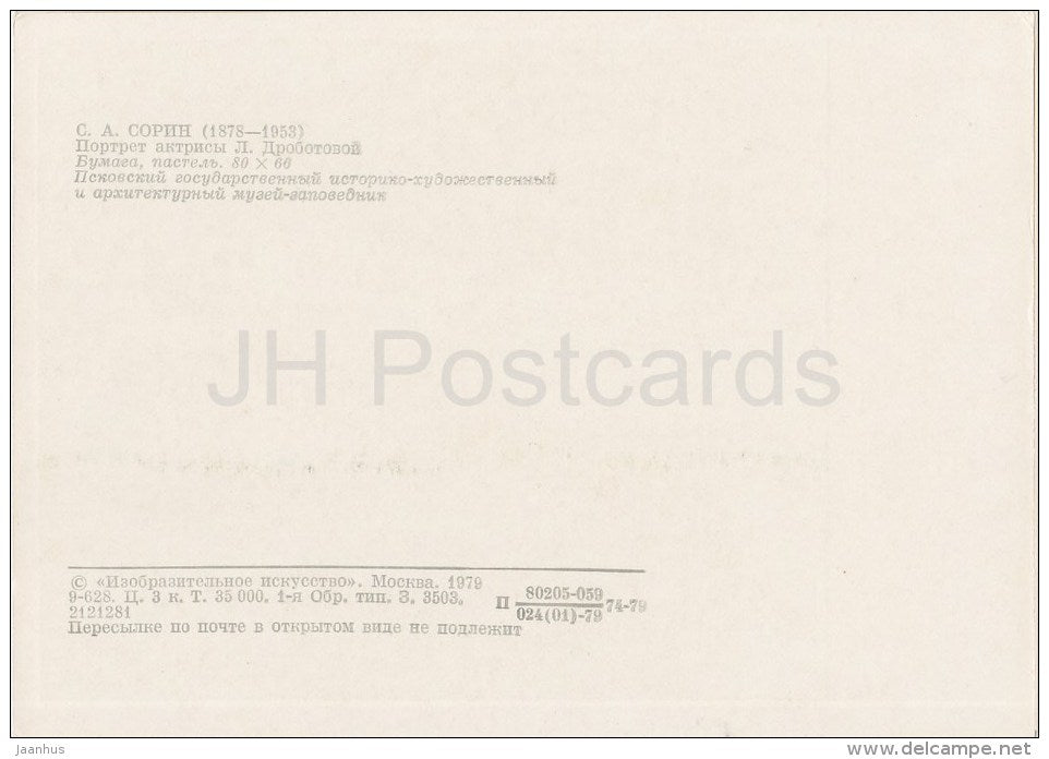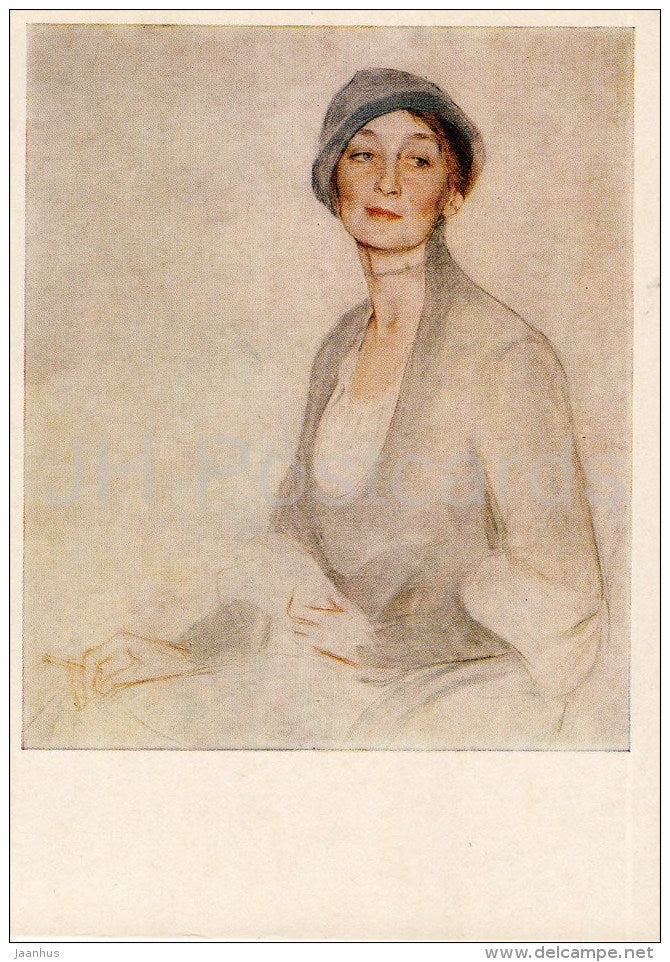painting by S. Sorin - Portrait of Actress L. Drobotova - hat - Russian art - 1979 - Russia USSR - unused