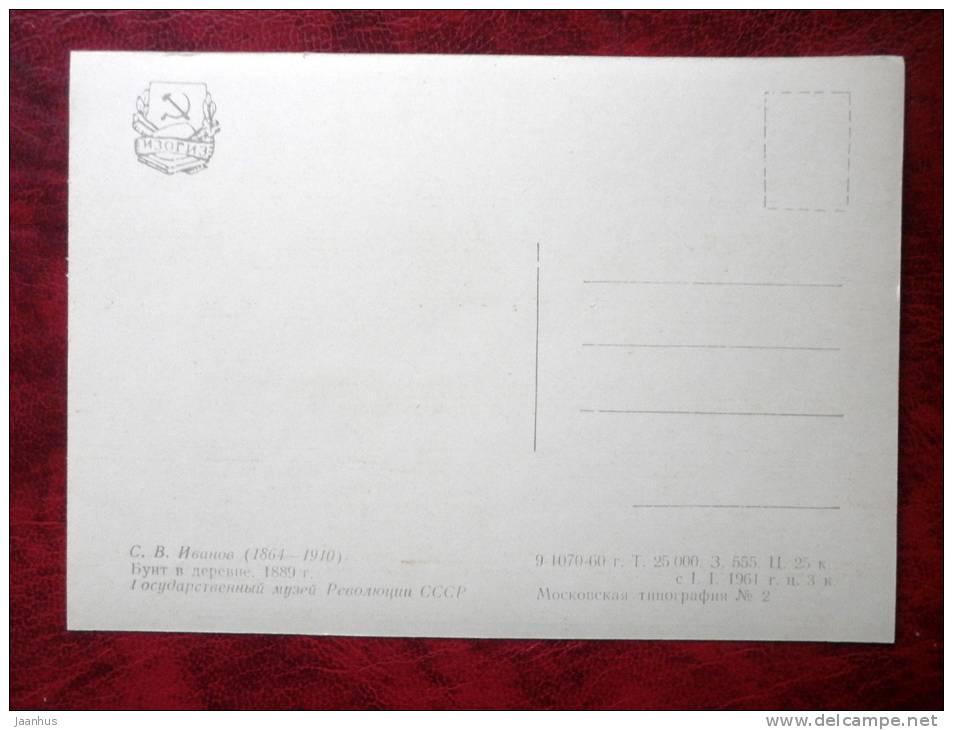 Painting by S. V. Ivanov - riot in the village, 1889 - soldiers - russian art - unused