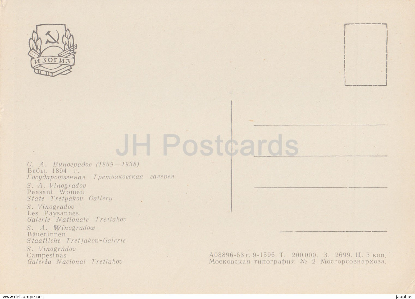 painting by S. Vinogradov - Peasant Women - 1 - Russian art - 1963 - Russia USSR - unused