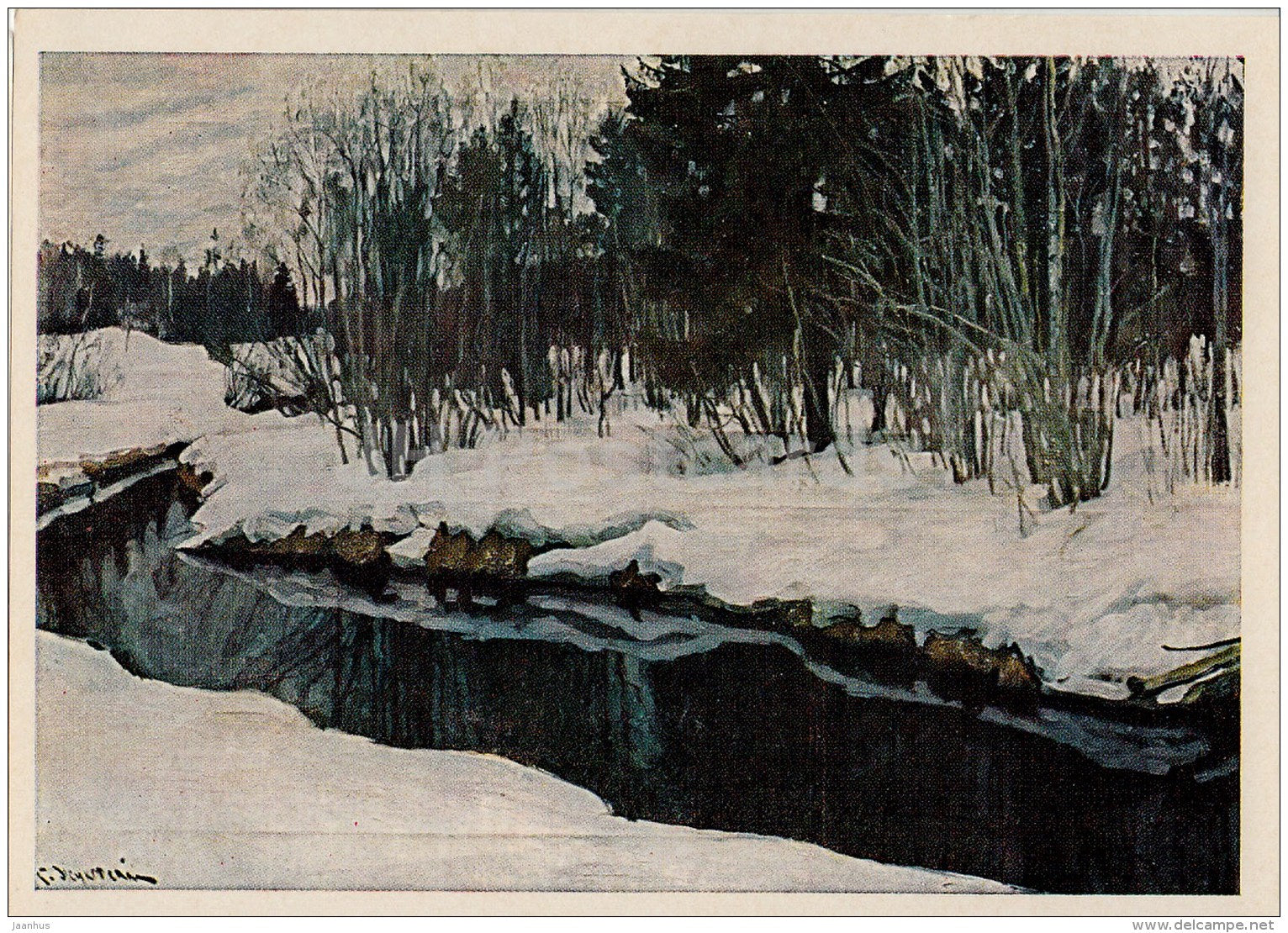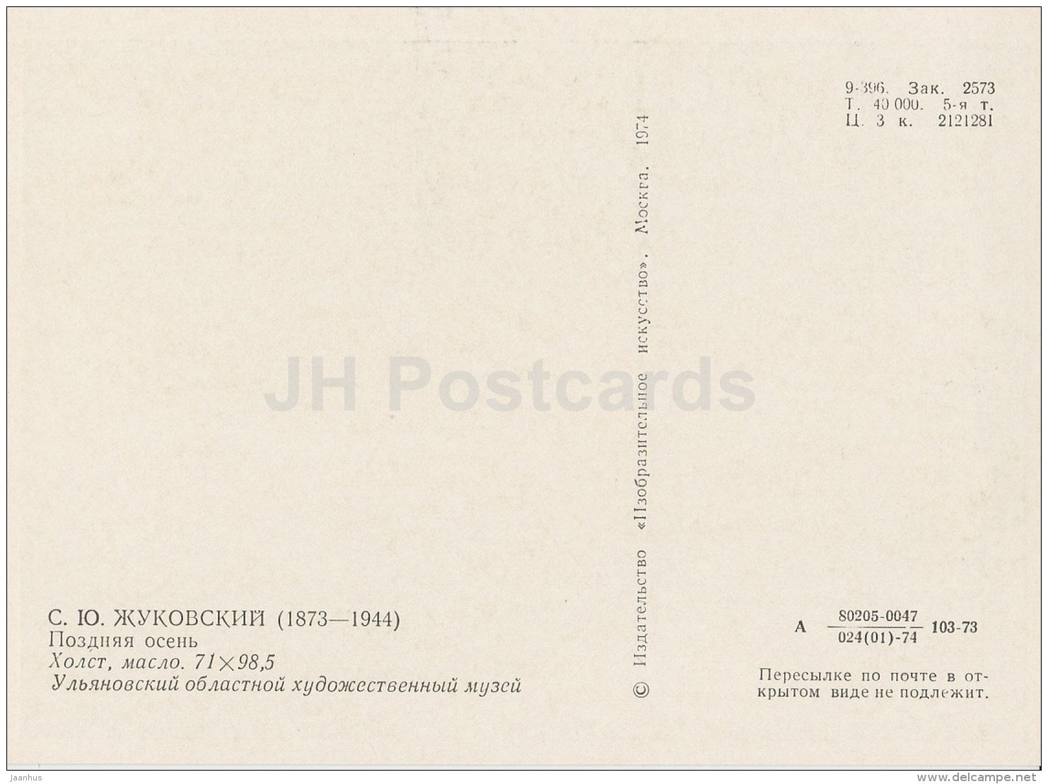 painting by S. Zhukovsky - Late Autumn - river - Russian art - 1974 - Russia USSR - unused