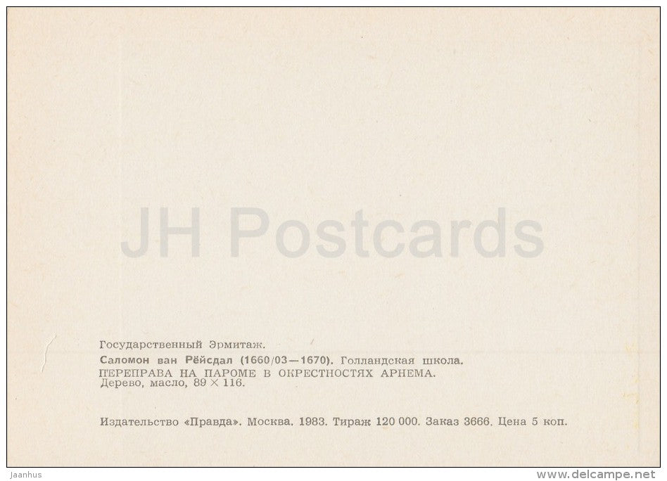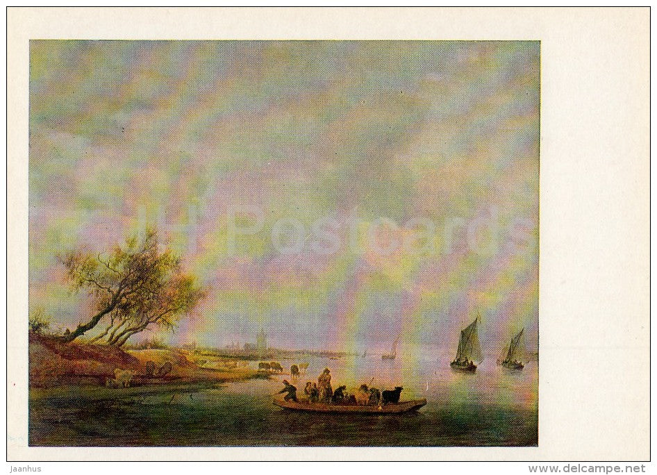 painting by Salomon van Ruysdael - ferry crossing in the vicinity of Arnhem - Dutch art - 1983 - Russia USSR - unused